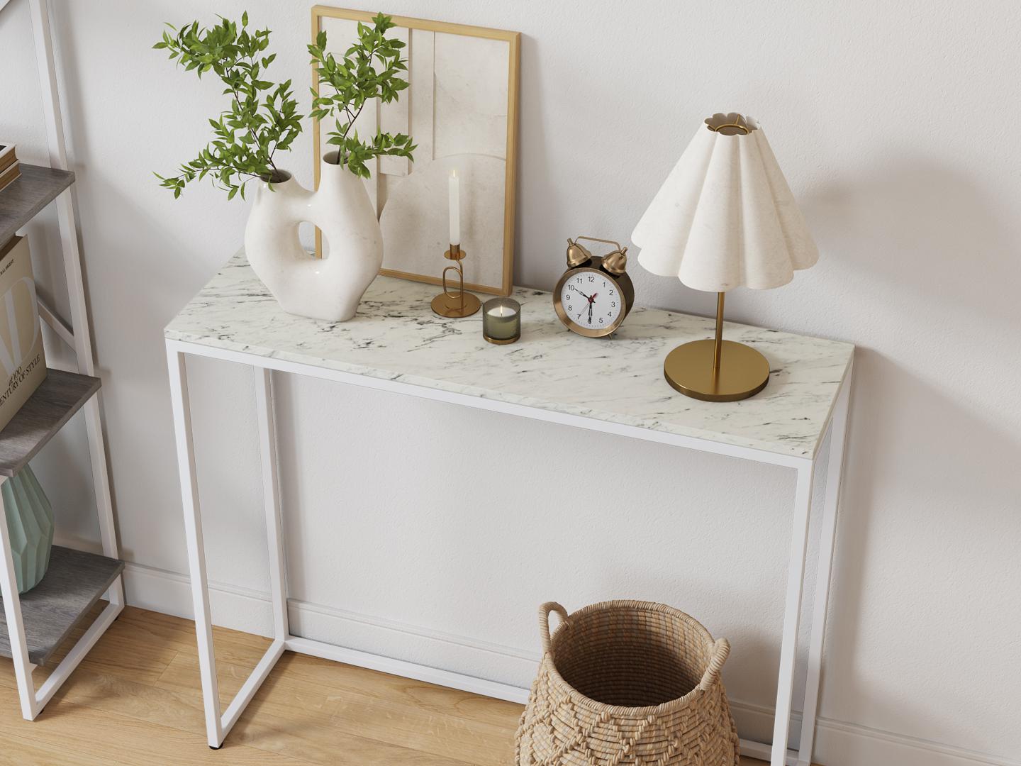 Консоль LoftyHome Стол консольный Мальборк Мрамор Сноу с белым основанием лофт арт. 1251799