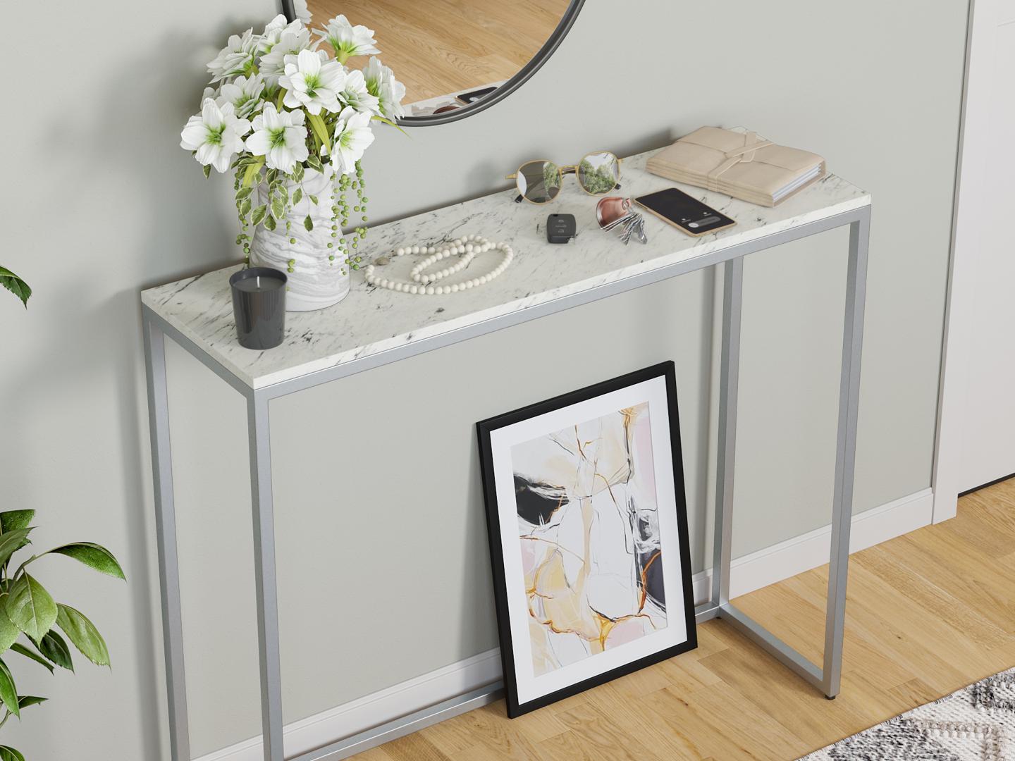 Стол консольный Мальборк Мрамор Сноу с серебряным основанием