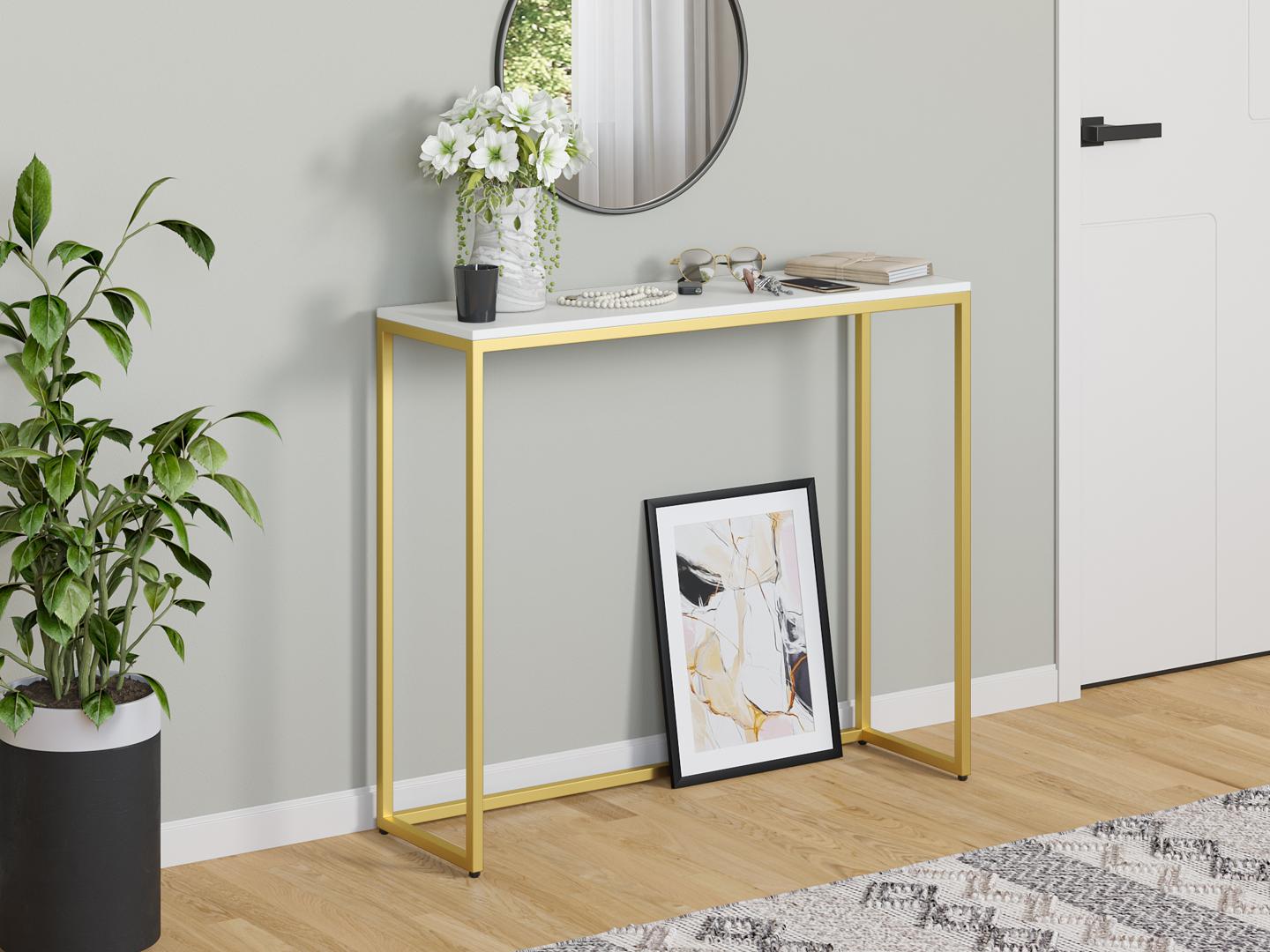 Консоль LoftyHome Стол консольный Мальборк Белый Альпийский с золотым основанием лофт арт. 1628122