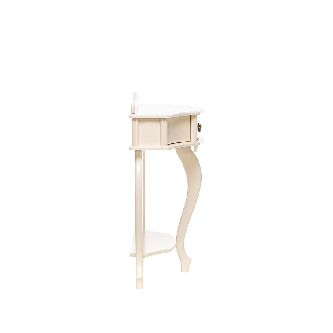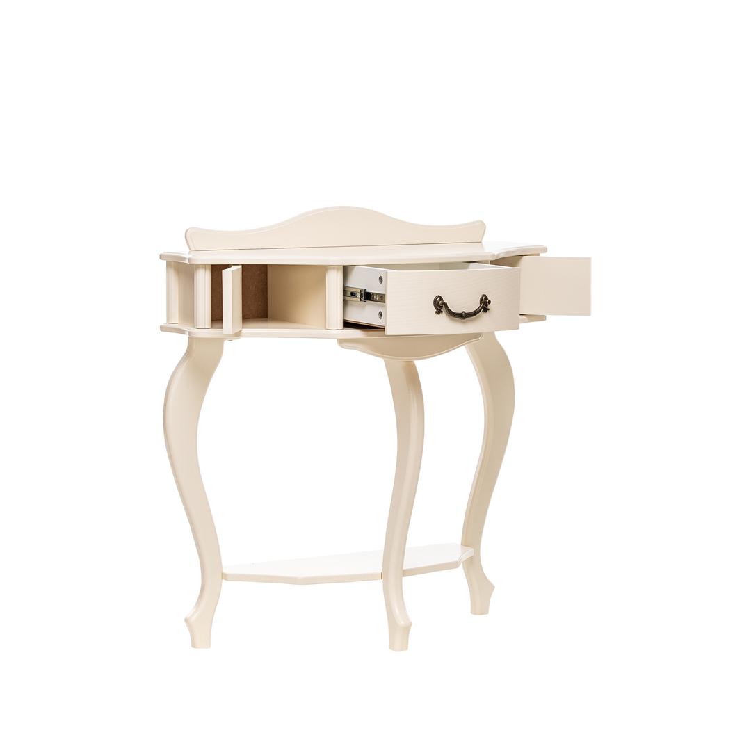 Изящная и стильная консоль Джульетта. Имеет выдвижной ящик и две боковые створки. В сочетании с комодом, банкеткой и зеркалом составит прекрасный гарнитур.