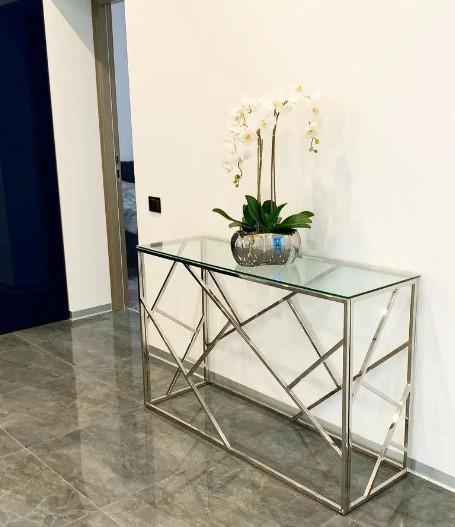 Вес, кг: 21 / Высота (см): 78 / Гарантия, мес.: 12 / Глубина (см): 40 / Количество коробок: 1 / Материал каркаса: металл / Материал столешницы: стекло / Необходимость сборки: да / Раздвижной: нет / Размер упаковки 1: 1,3/0,85/0,15 / Страна производитель: Китай / Форма столешницы: прямоугольник / Цвет каркаса: серебро / Цвет столешницы: прозрачный / Ширина (см): 120