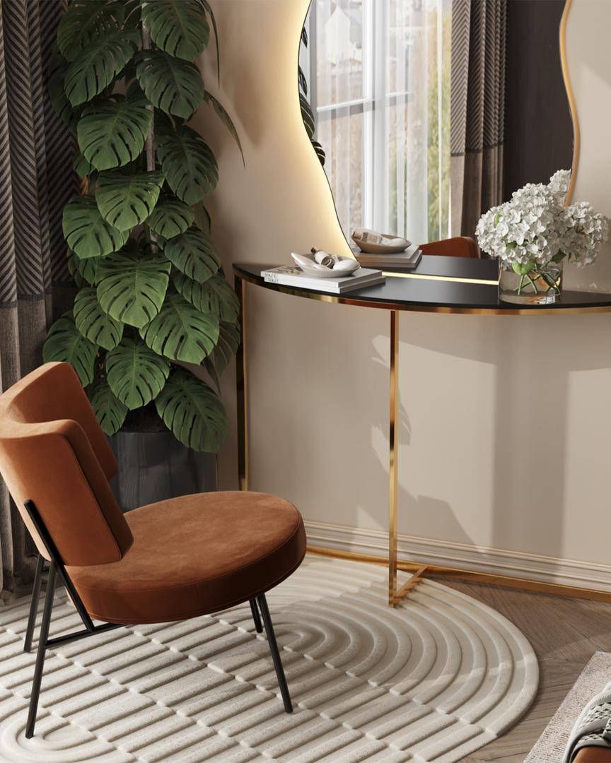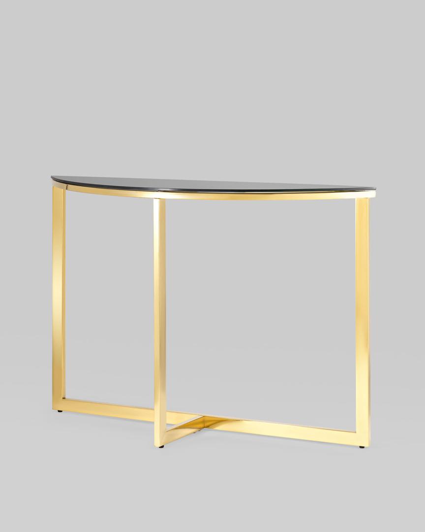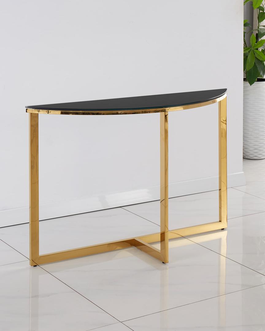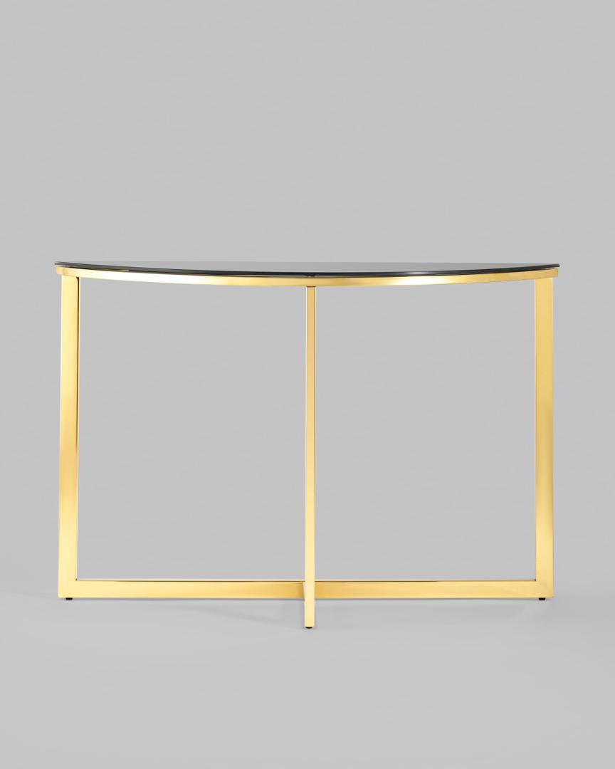 Консоль полукруглая АЛЬБА 115*30 золото стекло черное закаленное каркас нержавеющая сталь