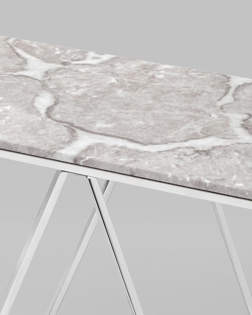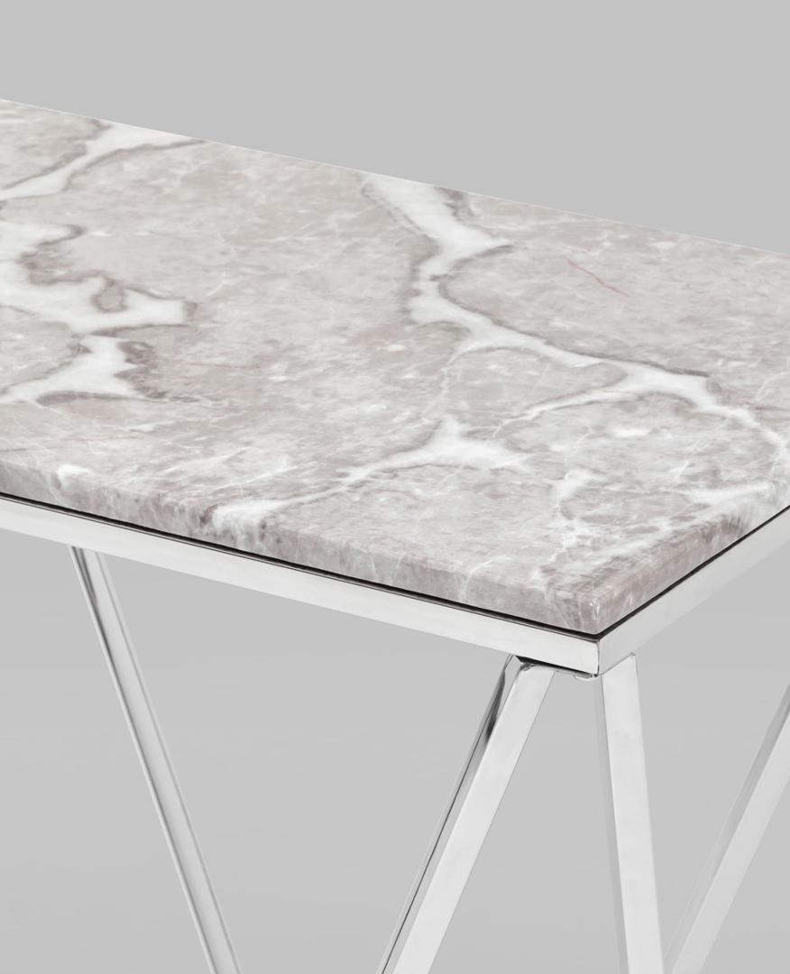 Консоль Авалон 122*41 серый мрамор каркас нержавеющая сталь серебро