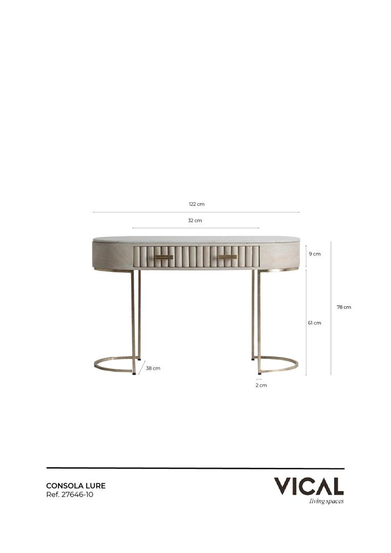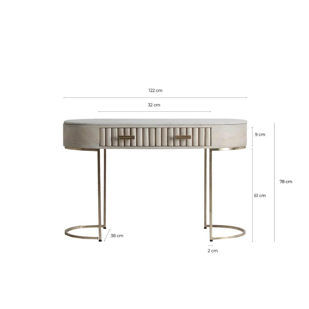 Консольный стол, кремовый/золотой цвет, стиль арт-деко. Изготовлен из дерева манго в сочетании с железом и латунью. Съемный продукт.
