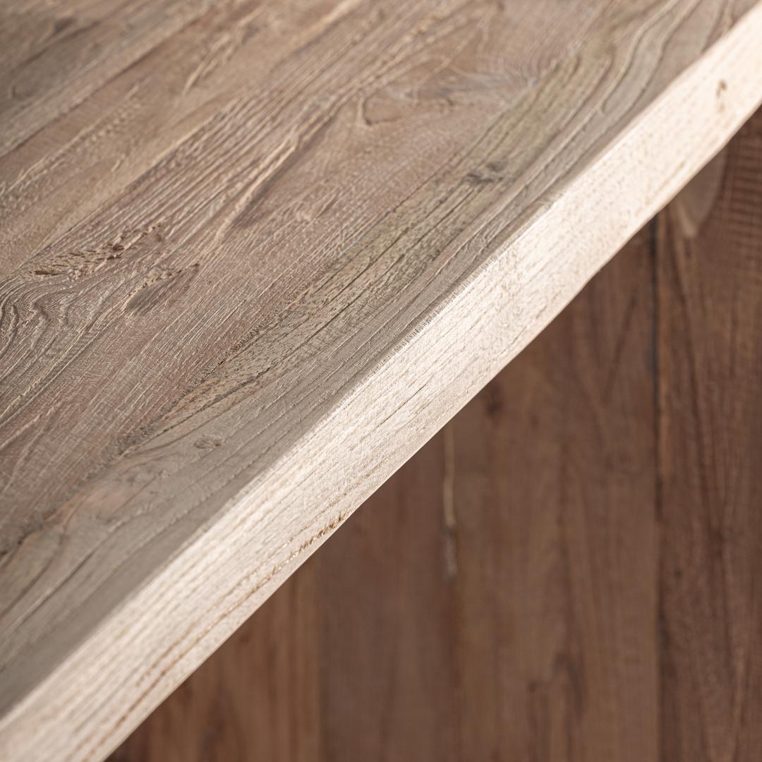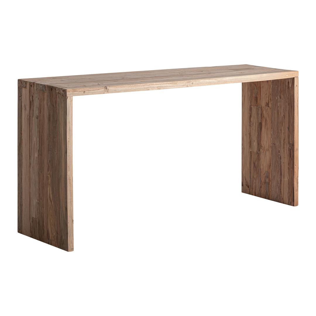 Консольный столик Helmond в деревенском стиле, изготовленный из переработанной тиковой древесины коричневого цвета. Ширина: 180 см, Глубина: 45 см, Высота: 85 см