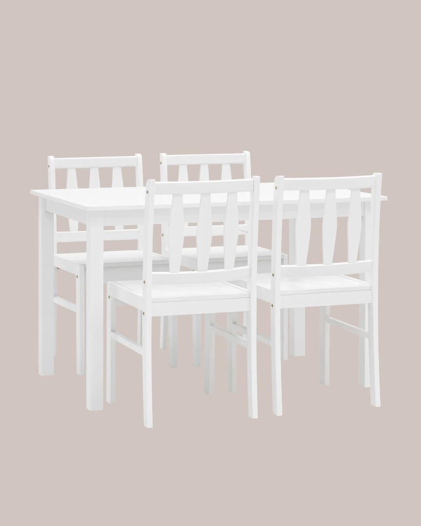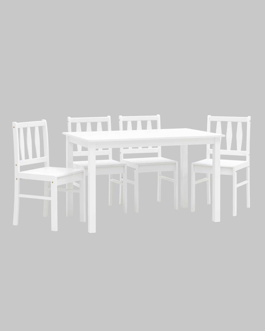 Комплект обеденный INGRID из стола и четырех стульев деревянные, ножки стола и каркас стульев из массива гевеи