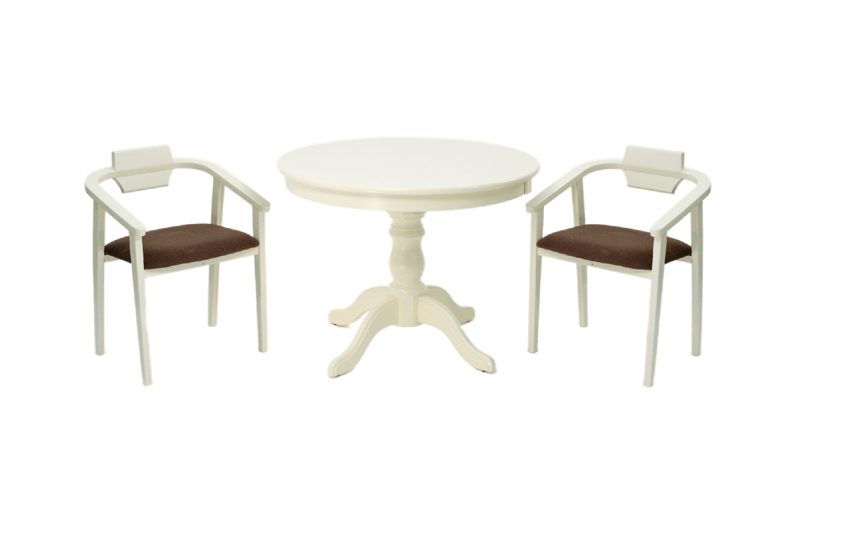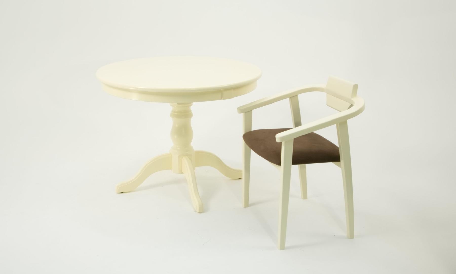 Комплект из деревянного стола Брамс на каркасе из натурального дерева и 2 стула Челси отлично подойдет к интерьеру, выдержанному в классическом стиле. Данный комплект станет центральным элементом в гостиной, столовой зоне, на кухне, позволив создать уютное обеденное место, где смогут собираться члены дружной семьи и их гости.У модели круглая форма столешницы. Такое решение исключит риск сколов и обеспечит безопасность, в том числе, детям.Комплект выполнен в красивом цвете - слоновая кость. Сочетание изысканного дизайна и высокого качества исполнения - главная особенность комплекта.Столешница выполнена из материалов с великолепными эксплуатационными свойствами - МДФ (Материал создается на основе натуральной древесины. Практичен, надежен, имеет однородную гладкую структуру), шпон.Мебель проста в уходе - для поддержания первозданного вида достаточно использовать простую чуть влажную салфетку по мере необходимости.Состав комплекта:- стол F001001S00- стулья Z011849S04