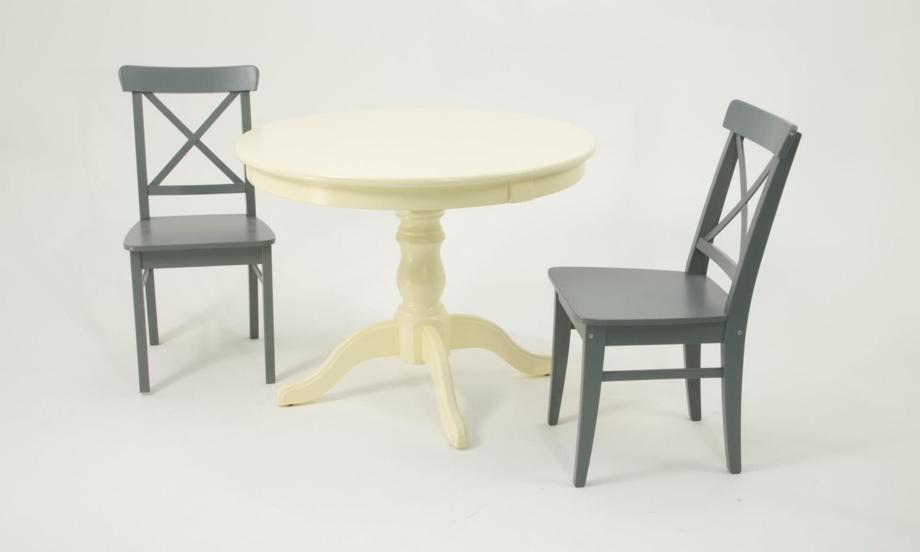 Комплект из деревянного стола Брамс на каркасе из натурального дерева и 2 стула Ингольф отлично подойдет к интерьеру, выдержанному в классическом стиле. Данный комплект станет центральным элементом в гостиной, столовой зоне, на кухне, позволив создать уютное обеденное место, где смогут собираться члены дружной семьи и их гости.У модели круглая форма столешницы. Такое решение исключит риск сколов и обеспечит безопасность, в том числе, детям.Комплект выполнен в красивой комбинации цветов - слоновая кость и серый. Сочетание изысканного дизайна и высокого качества исполнения - главная особенность комплекта.Столешница выполнена из материалов с великолепными эксплуатационными свойствами - МДФ (Материал создается на основе натуральной древесины. Практичен, надежен, имеет однородную гладкую структуру), шпон.Мебель проста в уходе - для поддержания первозданного вида достаточно использовать простую чуть влажную салфетку по мере необходимости.Состав комплекта:- стол F001001S00- стулья R100740G00