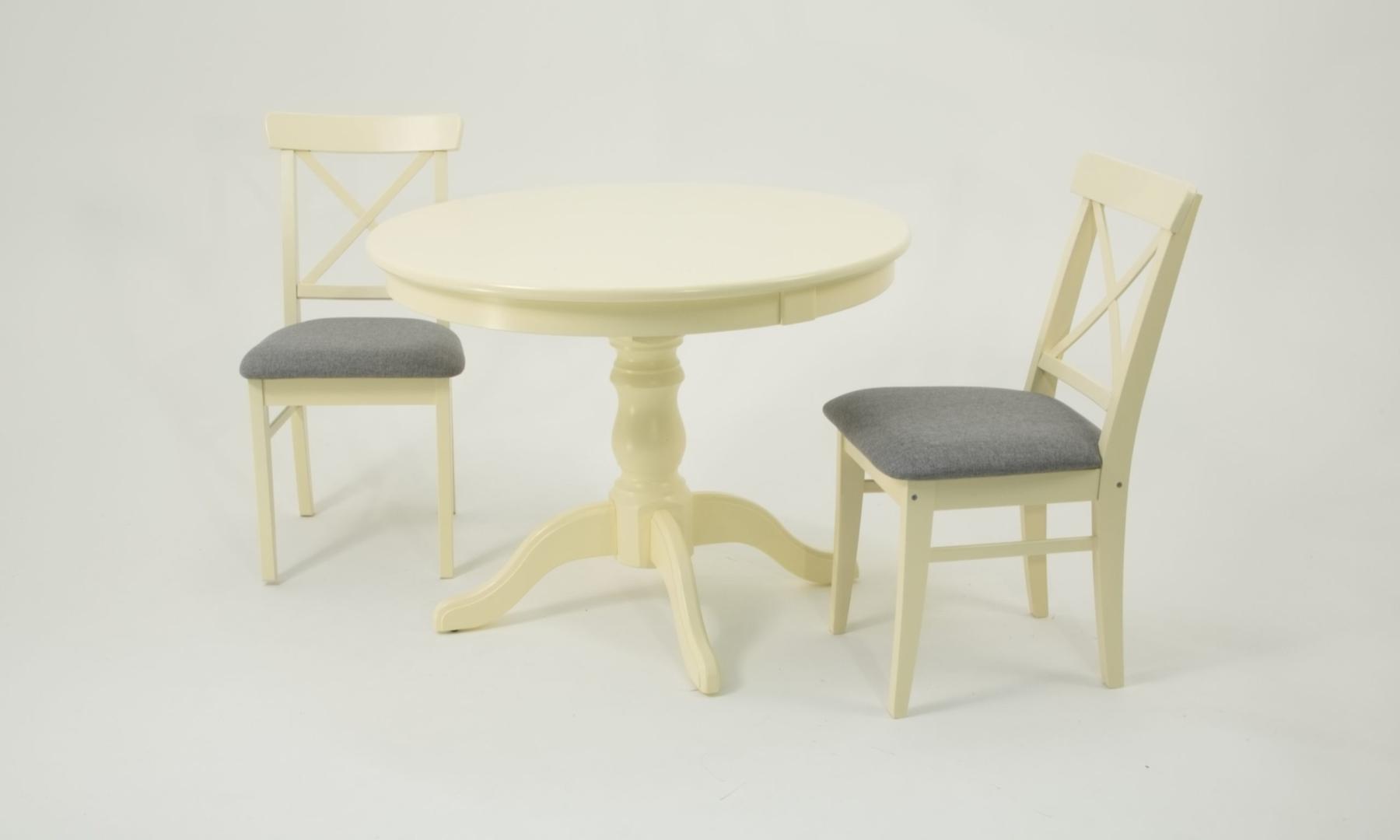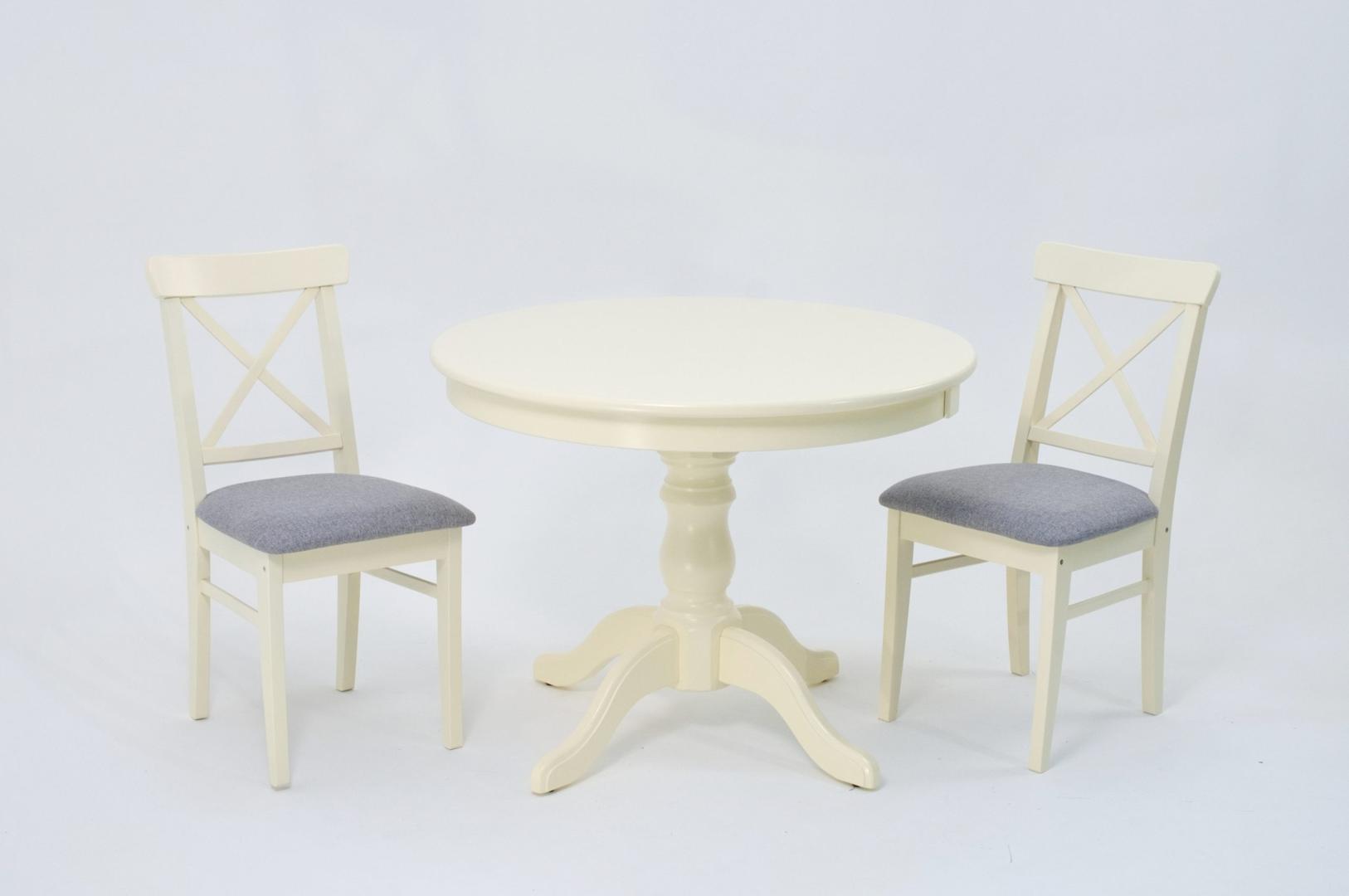 Комплект из деревянного стола Брамс на каркасе из натурального дерева и 2 стула Ингольф отлично подойдет к интерьеру, выдержанному в классическом стиле. Данный комплект станет центральным элементом в гостиной, столовой зоне, на кухне, позволив создать уютное обеденное место, где смогут собираться члены дружной семьи и их гости.У модели круглая форма столешницы. Такое решение исключит риск сколов и обеспечит безопасность, в том числе, детям.Комплект выполнен в красивом цвете - слоновая кость. Сочетание изысканного дизайна и высокого качества исполнения - главная особенность комплекта.Столешница выполнена из материалов с великолепными эксплуатационными свойствами - МДФ (Материал создается на основе натуральной древесины. Практичен, надежен, имеет однородную гладкую структуру), шпон.Мебель проста в уходе - для поддержания первозданного вида достаточно использовать простую чуть влажную салфетку по мере необходимости.Состав комплекта:- стол F001001S00- стулья R101753S01