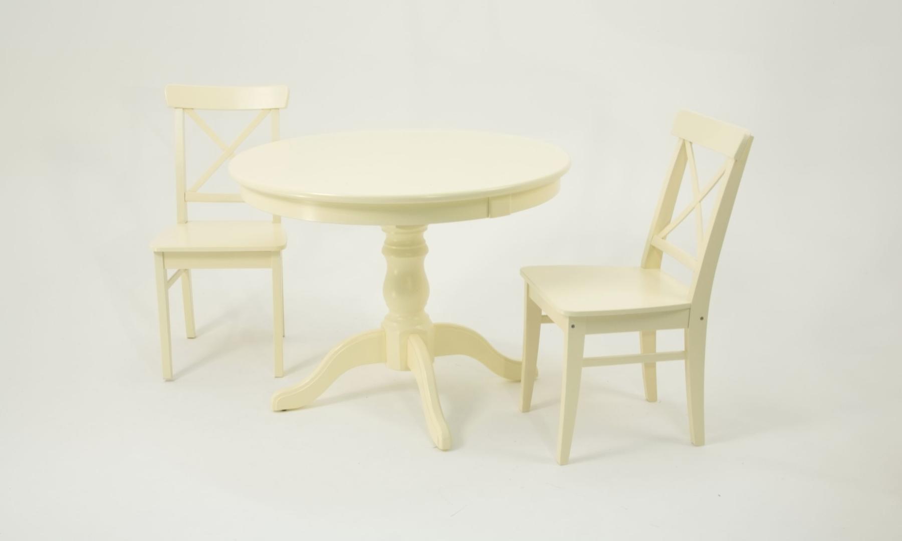 Комплект из деревянного стола Брамс на каркасе из натурального дерева и 2 стула Ингольф отлично подойдет к интерьеру, выдержанному в классическом стиле. Данный комплект станет центральным элементом в гостиной, столовой зоне, на кухне, позволив создать уютное обеденное место, где смогут собираться члены дружной семьи и их гости.У модели круглая форма столешницы. Такое решение исключит риск сколов и обеспечит безопасность, в том числе, детям.Комплект выполнен в красивом цвете - слоновая кость. Сочетание изысканного дизайна и высокого качества исполнения - главная особенность комплекта.Столешница выполнена из материалов с великолепными эксплуатационными свойствами - МДФ (Материал создается на основе натуральной древесины. Практичен, надежен, имеет однородную гладкую структуру), шпон.Мебель проста в уходе - для поддержания первозданного вида достаточно использовать простую чуть влажную салфетку по мере необходимости.Состав комплекта:- стол F001001S00- стулья R100741S00