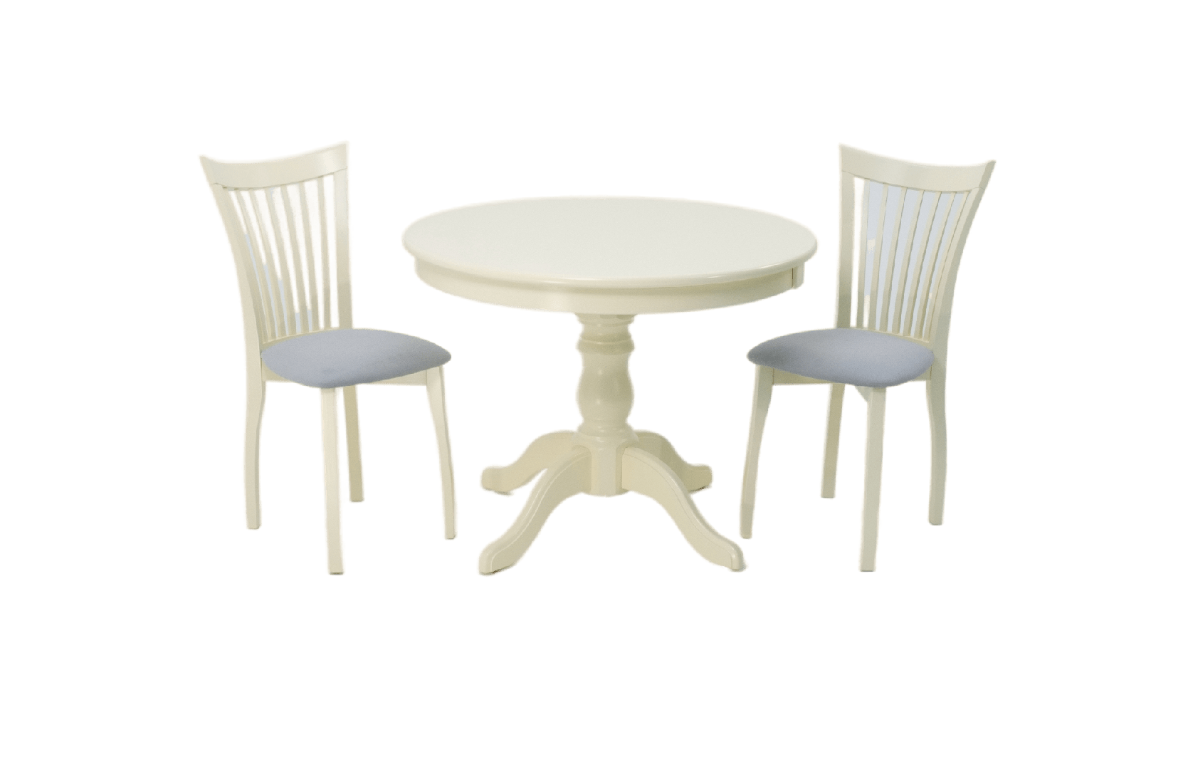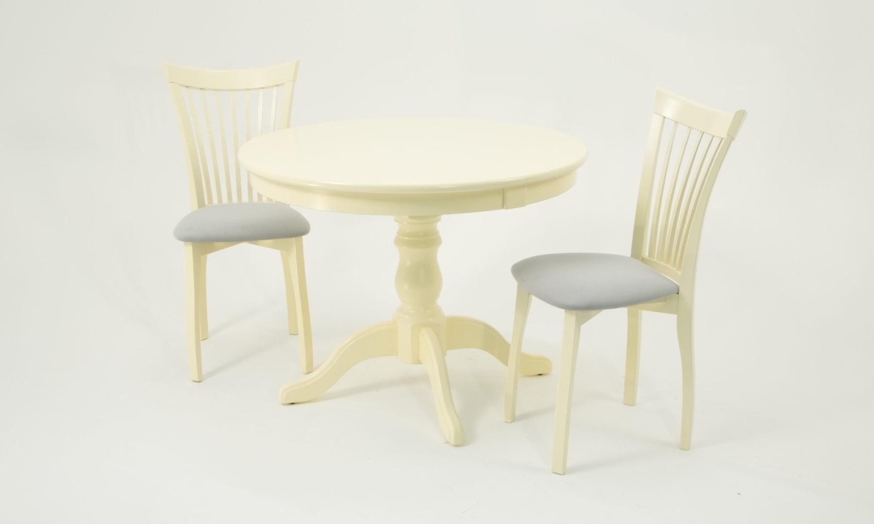Комплект из деревянного стола Брамс на каркасе из натурального дерева и 2 стула Миранда отлично подойдет к интерьеру, выдержанному в классическом стиле. Данный комплект станет центральным элементом в гостиной, столовой зоне, на кухне, позволив создать уютное обеденное место, где смогут собираться члены дружной семьи и их гости.У модели круглая форма столешницы. Такое решение исключит риск сколов и обеспечит безопасность, в том числе, детям.Комплект выполнен в красивом цвете - слоновая кость. Сочетание изысканного дизайна и высокого качества исполнения - главная особенность комплекта.Столешница выполнена из материалов с великолепными эксплуатационными свойствами - МДФ (Материал создается на основе натуральной древесины. Практичен, надежен, имеет однородную гладкую структуру), шпон.Мебель проста в уходе - для поддержания первозданного вида достаточно использовать простую чуть влажную салфетку по мере необходимости.Состав комплекта:- стол F001001S00- стулья R001441S01