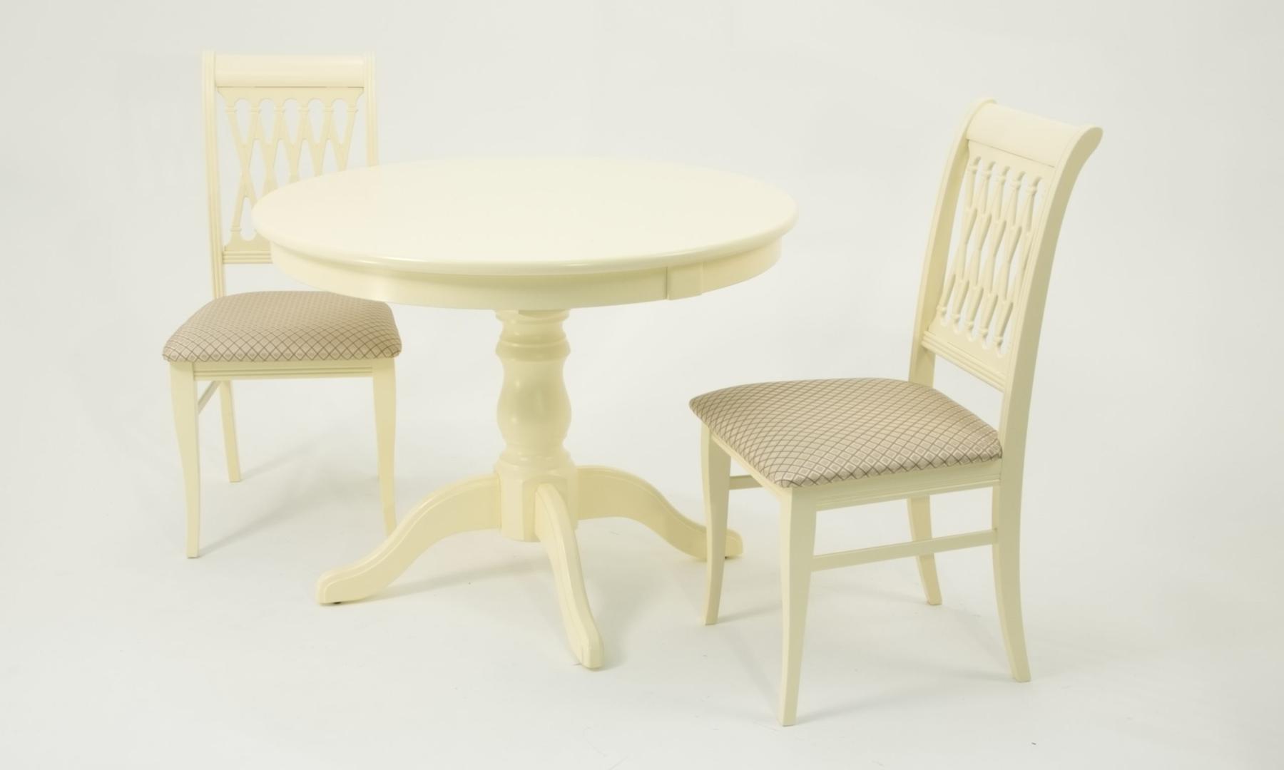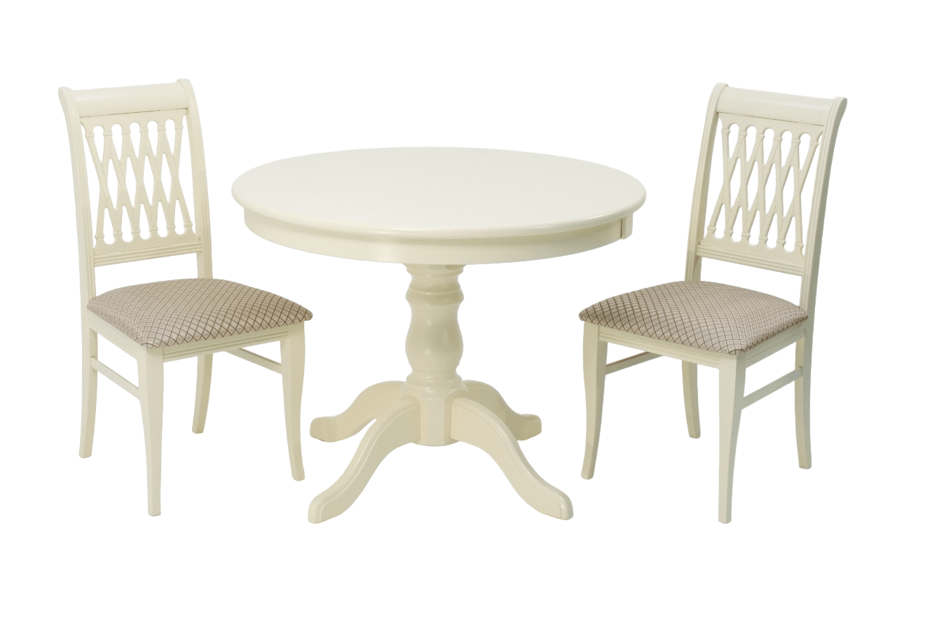 Комплект из деревянного стола Брамс на каркасе из натурального дерева и 2 стула Рич отлично подойдет к интерьеру, выдержанному в классическом стиле. Данный комплект станет центральным элементом в гостиной, столовой зоне, на кухне, позволив создать уютное обеденное место, где смогут собираться члены дружной семьи и их гости.У модели круглая форма столешницы. Такое решение исключит риск сколов и обеспечит безопасность, в том числе, детям.Комплект выполнен в красивом цвете - слоновая кость. Сочетание изысканного дизайна и высокого качества исполнения - главная особенность комплекта.Столешница выполнена из материалов с великолепными эксплуатационными свойствами - МДФ (Материал создается на основе натуральной древесины. Практичен, надежен, имеет однородную гладкую структуру), шпон.Мебель проста в уходе - для поддержания первозданного вида достаточно использовать простую чуть влажную салфетку по мере необходимости.Состав комплекта:- стол F001001S00- стулья R001401S12
