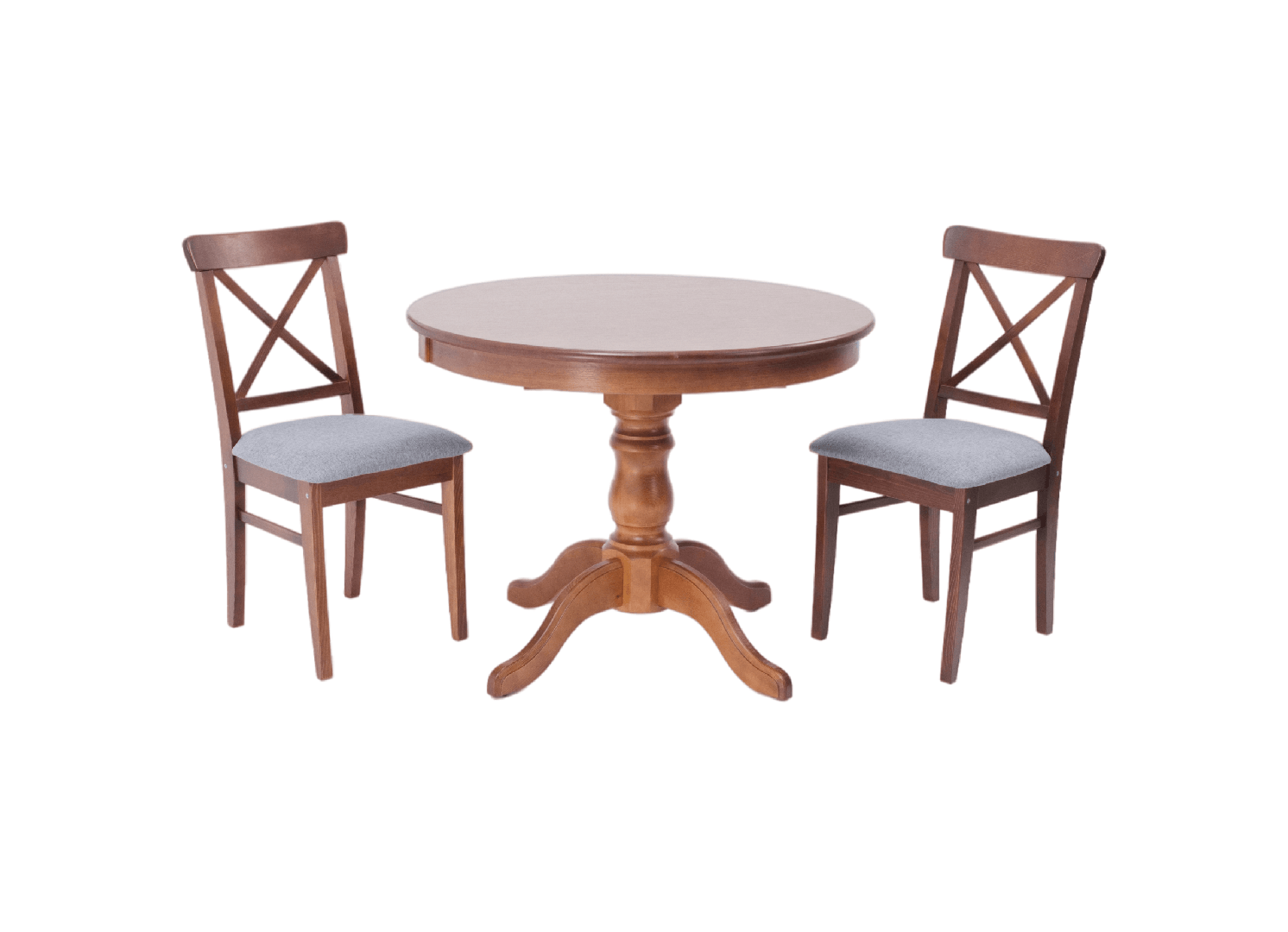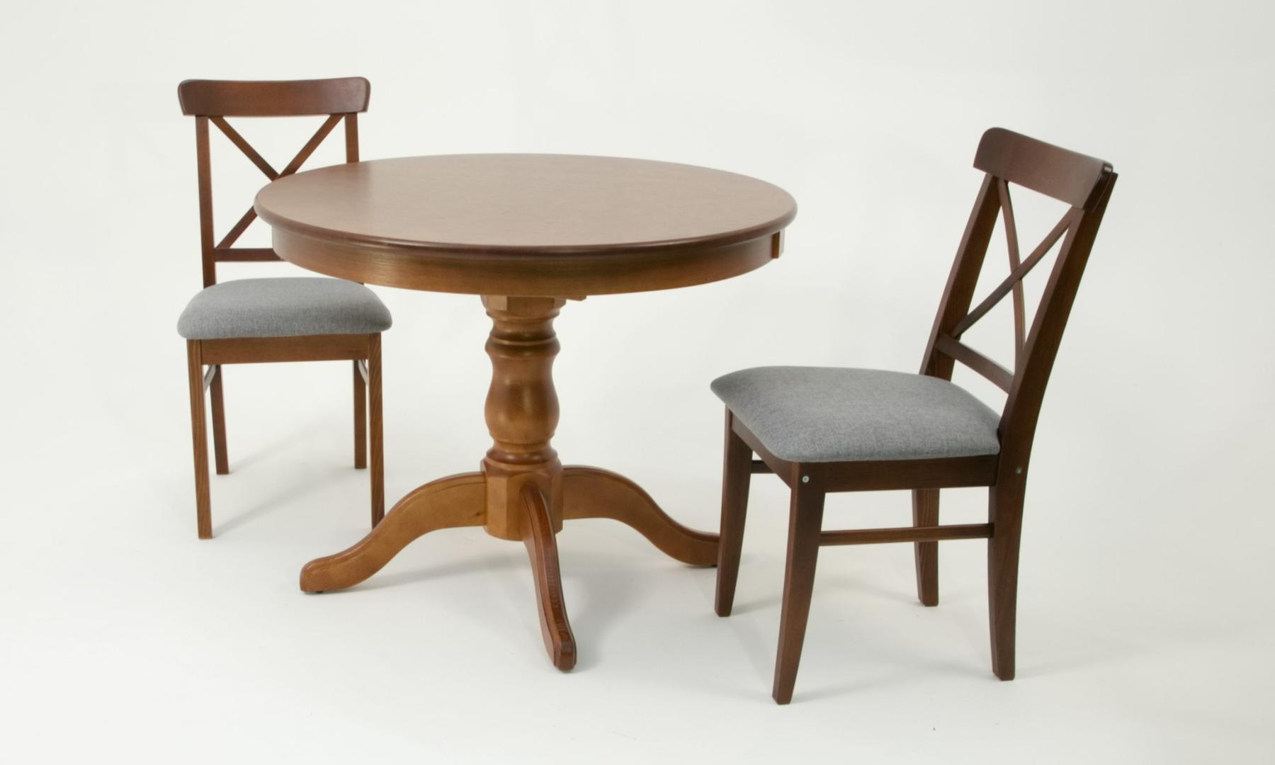 Комплект из деревянного стола Брамс на каркасе из натурального дерева и 2 стула Ингольф отлично подойдет к интерьеру, выдержанному в классическом стиле. Данный комплект станет центральным элементом в гостиной, столовой зоне, на кухне, позволив создать уютное обеденное место, где смогут собираться члены дружной семьи и их гости.У модели круглая форма столешницы. Такое решение исключит риск сколов и обеспечит безопасность, в том числе, детям.Комплект выполнен в красивом цвете - орех. Сочетание изысканного дизайна и высокого качества исполнения - главная особенность комплекта.Столешница выполнена из материалов с великолепными эксплуатационными свойствами - МДФ (Материал создается на основе натуральной древесины. Практичен, надежен, имеет однородную гладкую структуру), шпон.Мебель проста в уходе - для поддержания первозданного вида достаточно использовать простую чуть влажную салфетку по мере необходимости.Состав комплекта:- стол F001002W00- стулья R100742W01