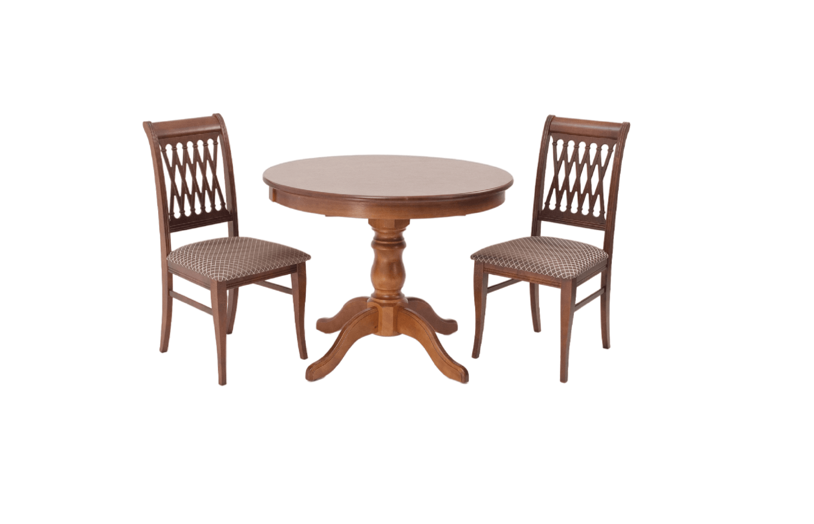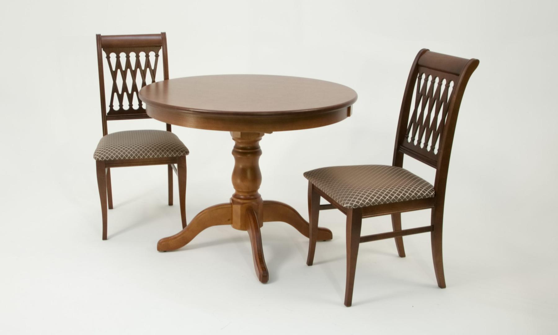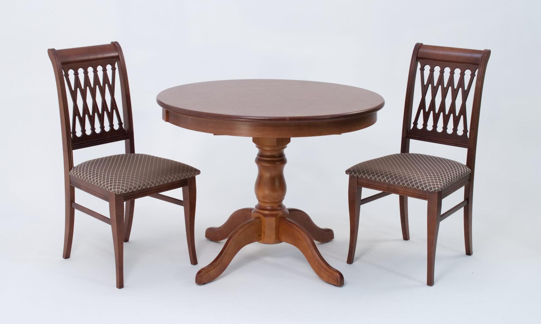 Комплект из деревянного стола Брамс на каркасе из натурального дерева и 2 стула Рич отлично подойдет к интерьеру, выдержанному в классическом стиле. Данный комплект станет центральным элементом в гостиной, столовой зоне, на кухне, позволив создать уютное обеденное место, где смогут собираться члены дружной семьи и их гости.У модели круглая форма столешницы. Такое решение исключит риск сколов и обеспечит безопасность, в том числе, детям.Комплект выполнен в красивом цвете - орех. Сочетание изысканного дизайна и высокого качества исполнения - главная особенность комплекта.Столешница выполнена из материалов с великолепными эксплуатационными свойствами - МДФ (Материал создается на основе натуральной древесины. Практичен, надежен, имеет однородную гладкую структуру), шпон.Мебель проста в уходе - для поддержания первозданного вида достаточно использовать простую чуть влажную салфетку по мере необходимости.Состав комплекта:- стол F001002W00- стулья R001404W14