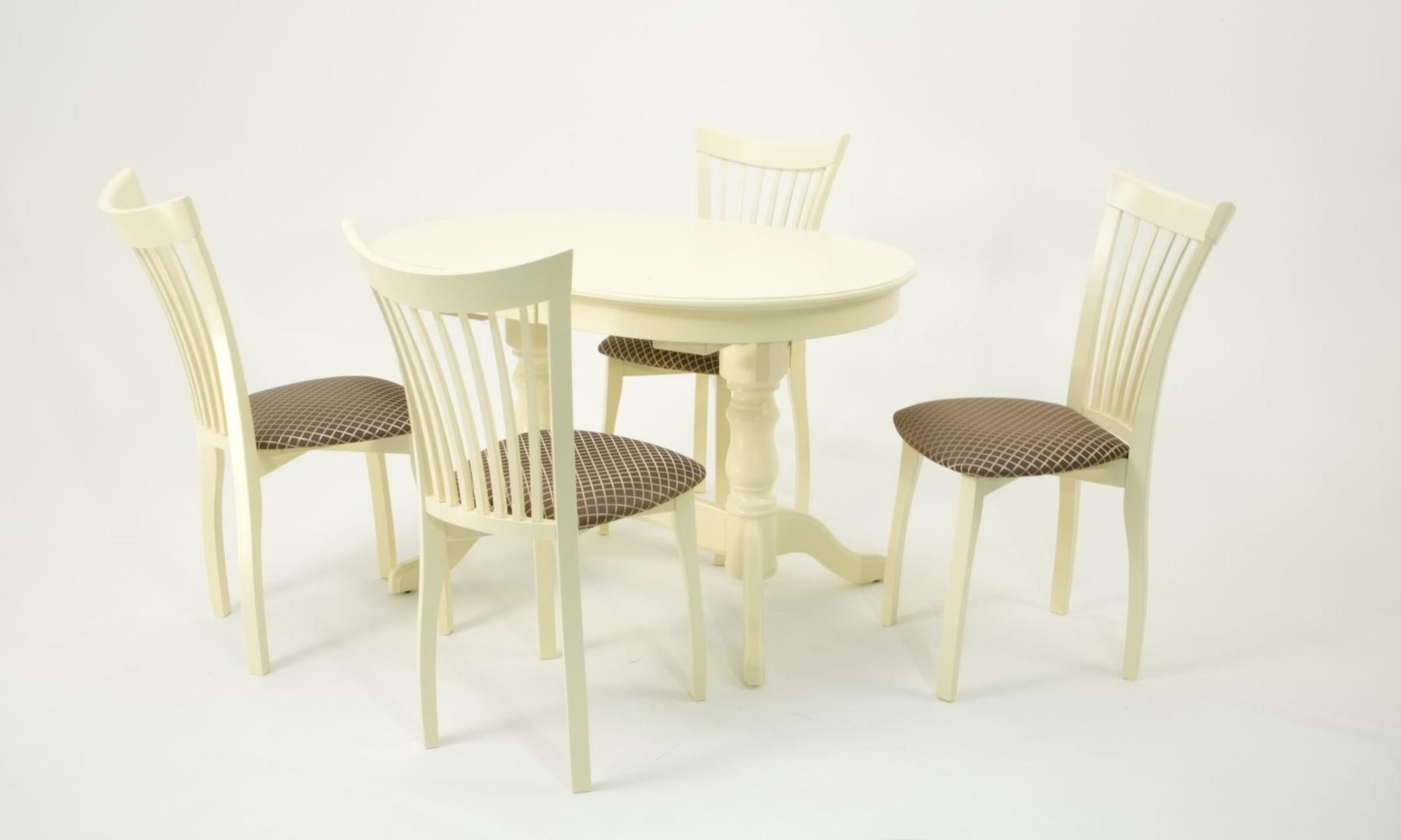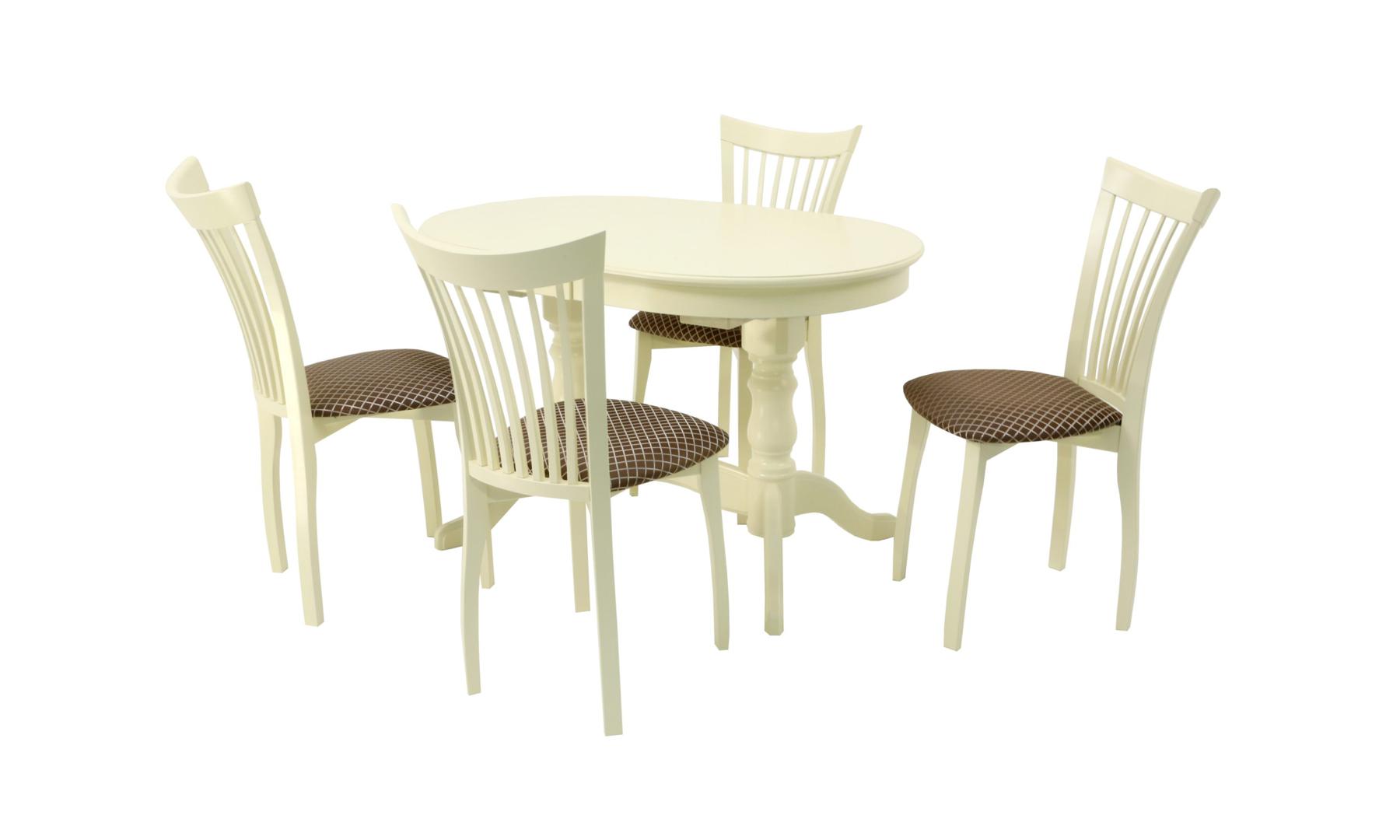 Комплект из деревянного стола Бизе на каркасе из натурального дерева и 4 стула Миранда отлично подойдет к интерьеру, выдержанному в классическом стиле. Данный комплект станет центральным элементом в гостиной, столовой зоне, на кухне, позволив создать уютное обеденное место, где смогут собираться члены дружной семьи и их гости.У модели овальная форма столешницы. Такое решение исключит риск сколов и обеспечит безопасность, в том числе, детям.Комплект выполнен в красивом цвете - слоновая кость. Сочетание изысканного дизайна и высокого качества исполнения - главная особенность комплекта.Столешница выполнена из материалов с великолепными эксплуатационными свойствами - МДФ (Материал создается на основе натуральной древесины. Практичен, надежен, имеет однородную гладкую структуру), шпон.Мебель проста в уходе - для поддержания первозданного вида достаточно использовать простую чуть влажную салфетку по мере необходимости.Состав комплекта:- стол F212020S00- стулья R001443S14