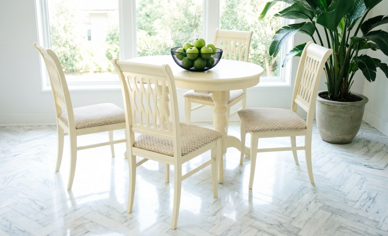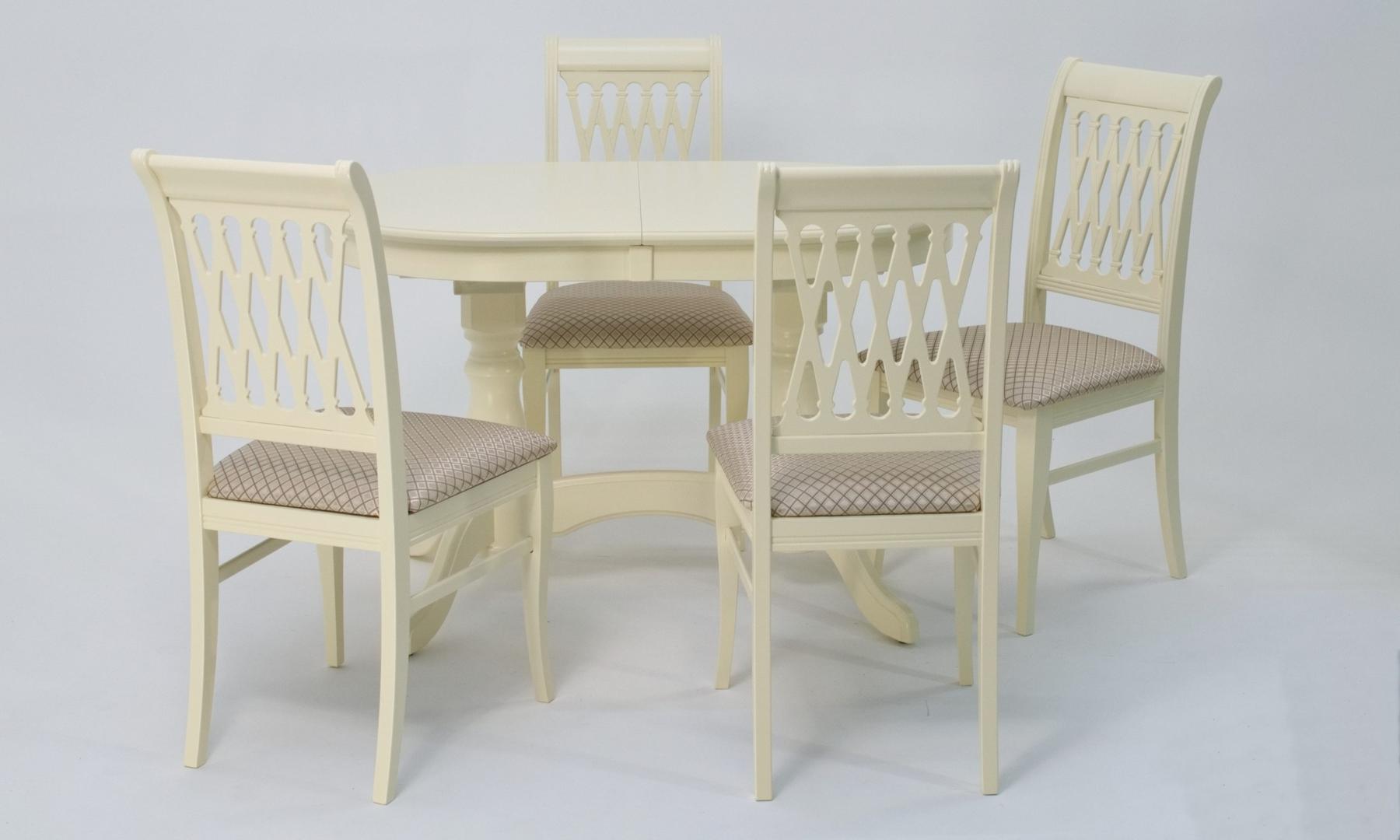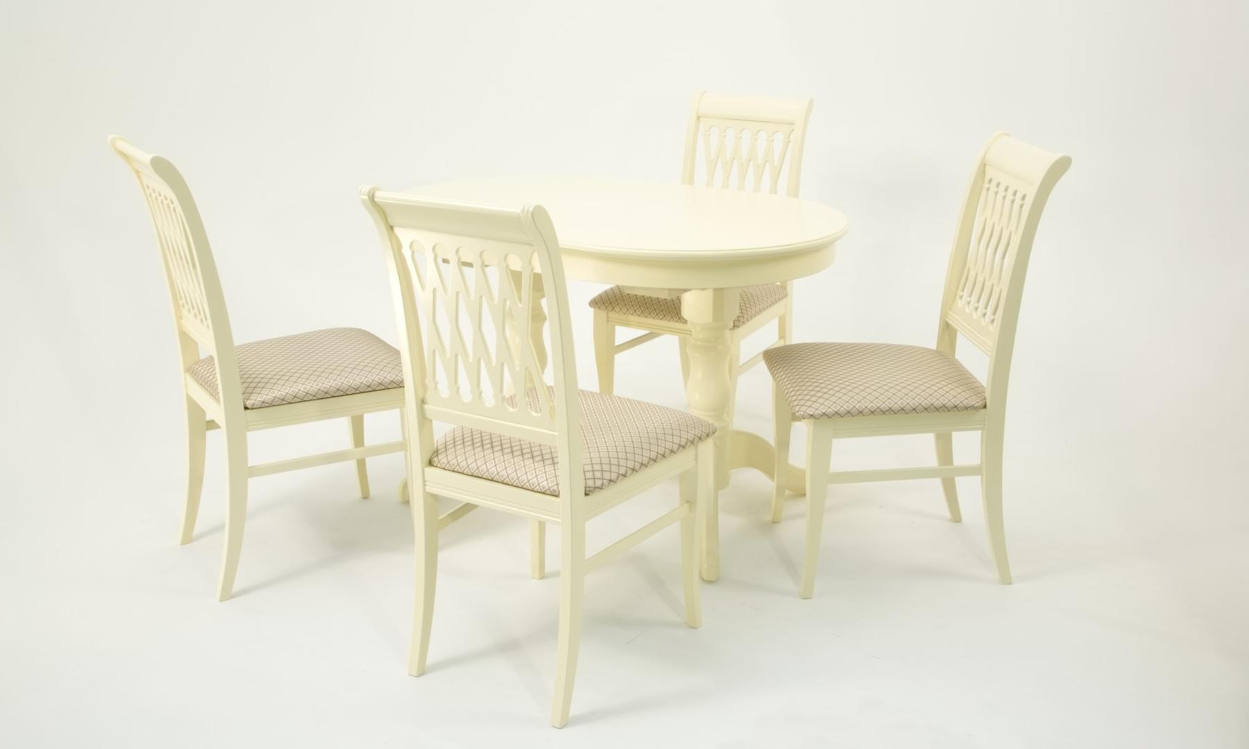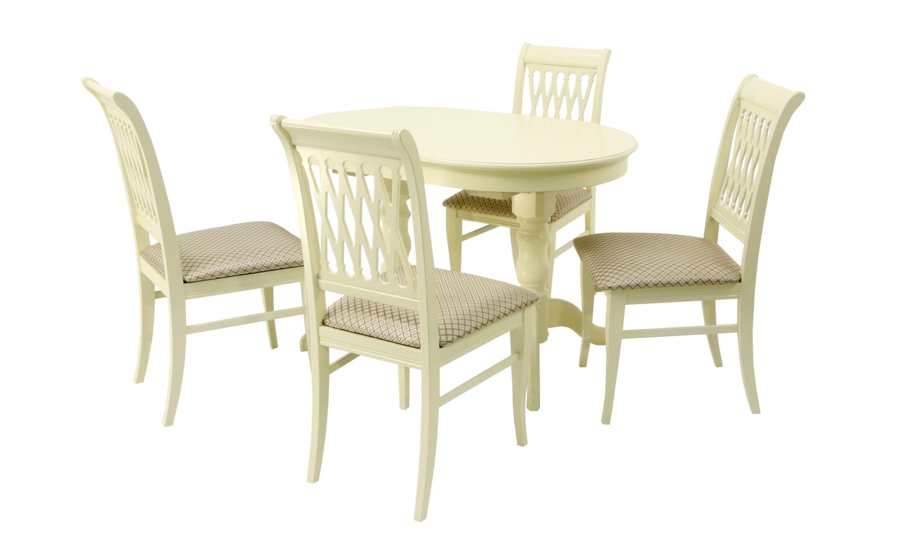 Комплект из деревянного стола Бизе на каркасе из натурального дерева и 4 стула Рич отлично подойдет к интерьеру, выдержанному в классическом стиле. Данный комплект станет центральным элементом в гостиной, столовой зоне, на кухне, позволив создать уютное обеденное место, где смогут собираться члены дружной семьи и их гости.У модели овальная форма столешницы. Такое решение исключит риск сколов и обеспечит безопасность, в том числе, детям.Комплект выполнен в красивом цвете - слоновая кость. Сочетание изысканного дизайна и высокого качества исполнения - главная особенность комплекта.Столешница выполнена из материалов с великолепными эксплуатационными свойствами - МДФ (Материал создается на основе натуральной древесины. Практичен, надежен, имеет однородную гладкую структуру), шпон.Мебель проста в уходе - для поддержания первозданного вида достаточно использовать простую чуть влажную салфетку по мере необходимости.Состав комплекта:- стол F212020S00- стулья R001401S12