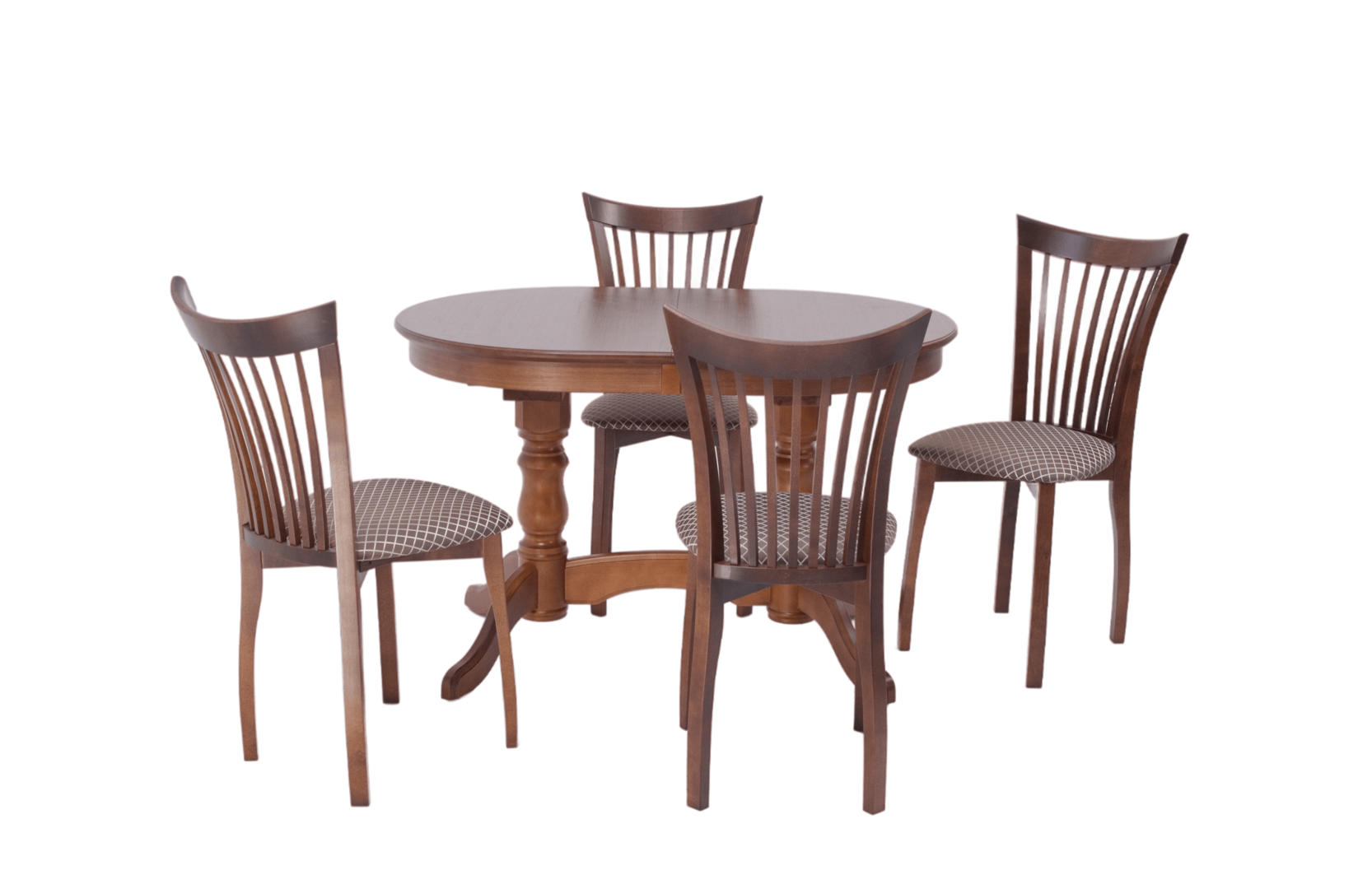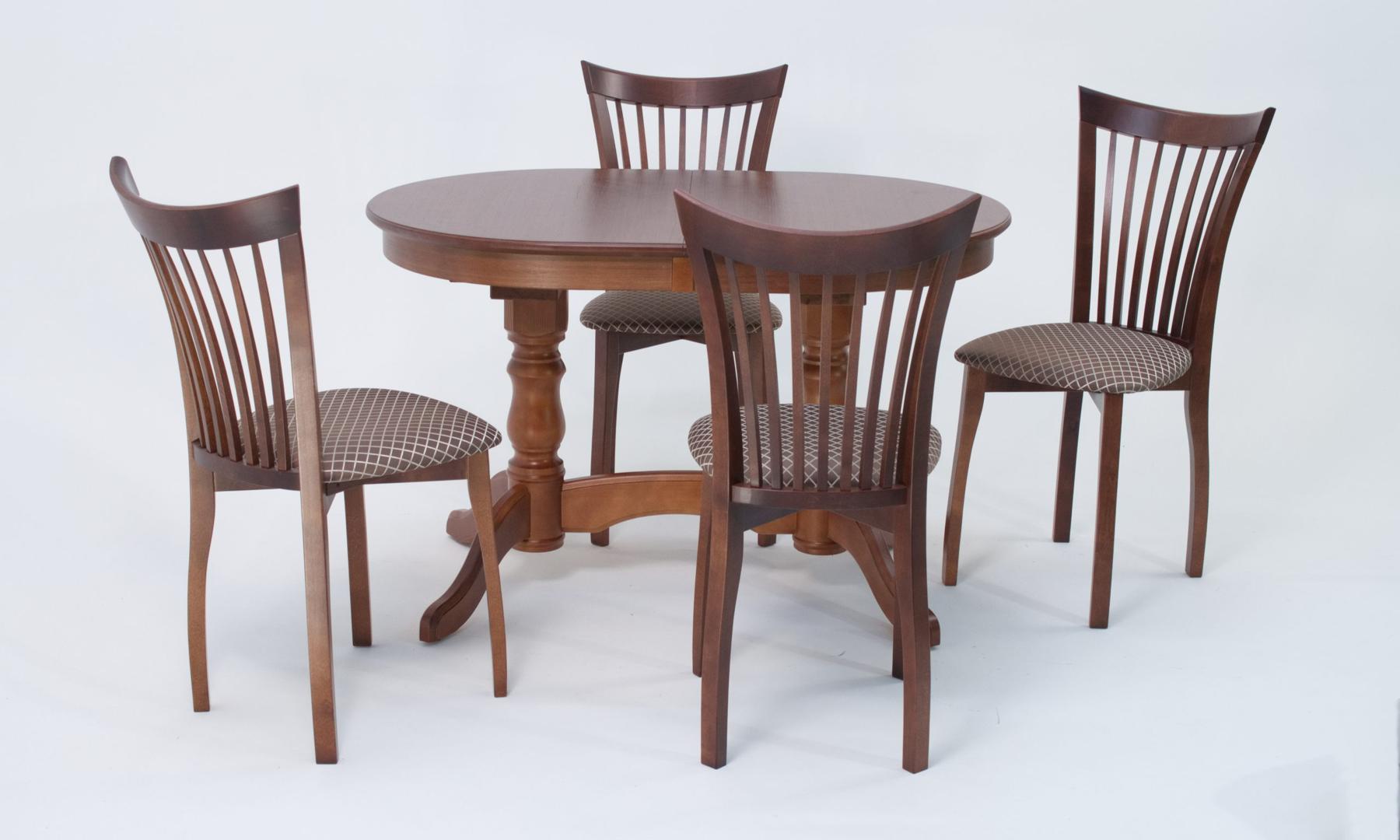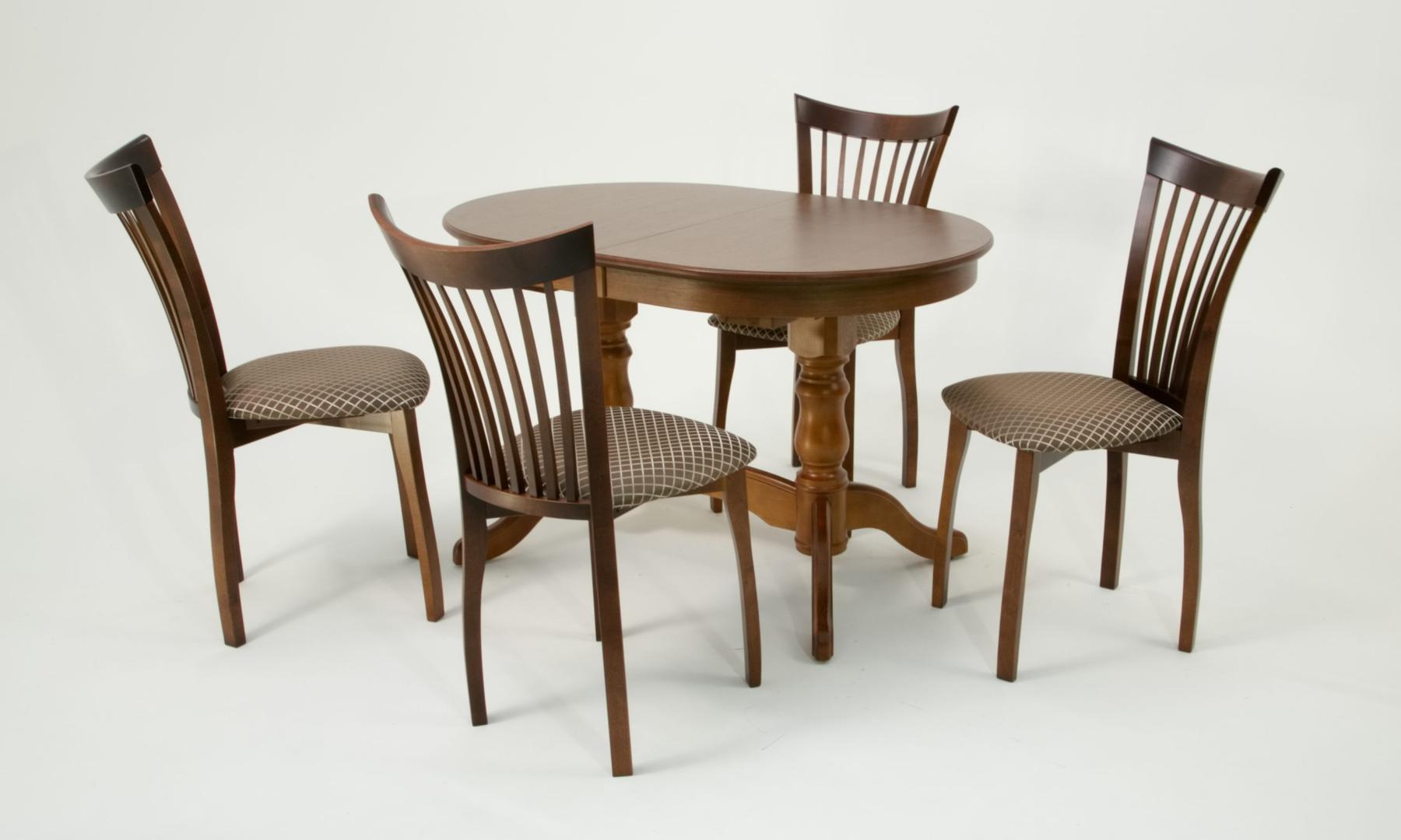 Комплект из деревянного стола Бизе на каркасе из натурального дерева и 4 стула Миранда отлично подойдет к интерьеру, выдержанному в классическом стиле. Данный комплект станет центральным элементом в гостиной, столовой зоне, на кухне, позволив создать уютное обеденное место, где смогут собираться члены дружной семьи и их гости.У модели овальная форма столешницы. Такое решение исключит риск сколов и обеспечит безопасность, в том числе, детям.Комплект выполнен в красивом цвете - орех. Сочетание изысканного дизайна и высокого качества исполнения - главная особенность комплекта.Столешница выполнена из материалов с великолепными эксплуатационными свойствами - МДФ (Материал создается на основе натуральной древесины. Практичен, надежен, имеет однородную гладкую структуру), шпон.Мебель проста в уходе - для поддержания первозданного вида достаточно использовать простую чуть влажную салфетку по мере необходимости.Состав комплекта:- стол F212021W00- стулья R001442W14