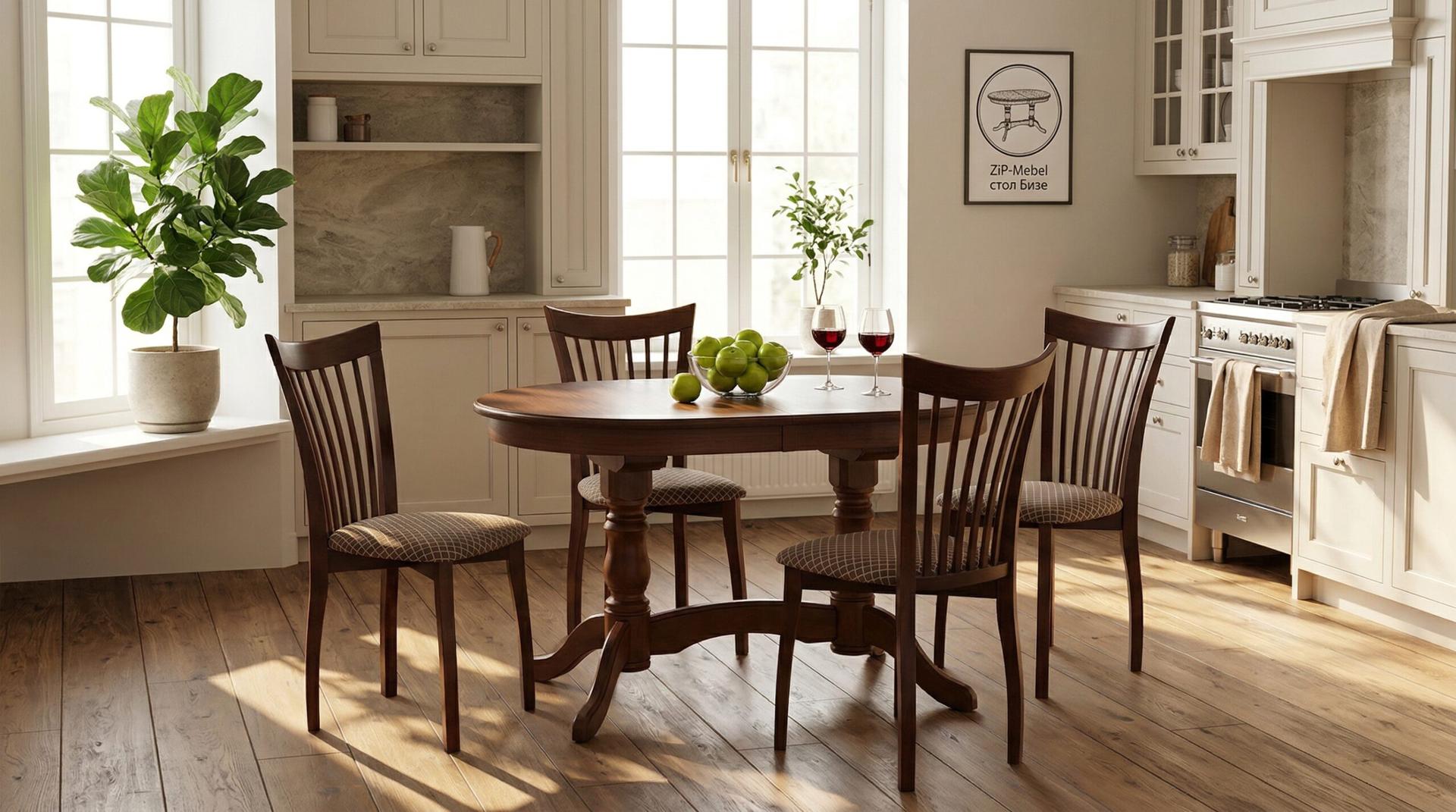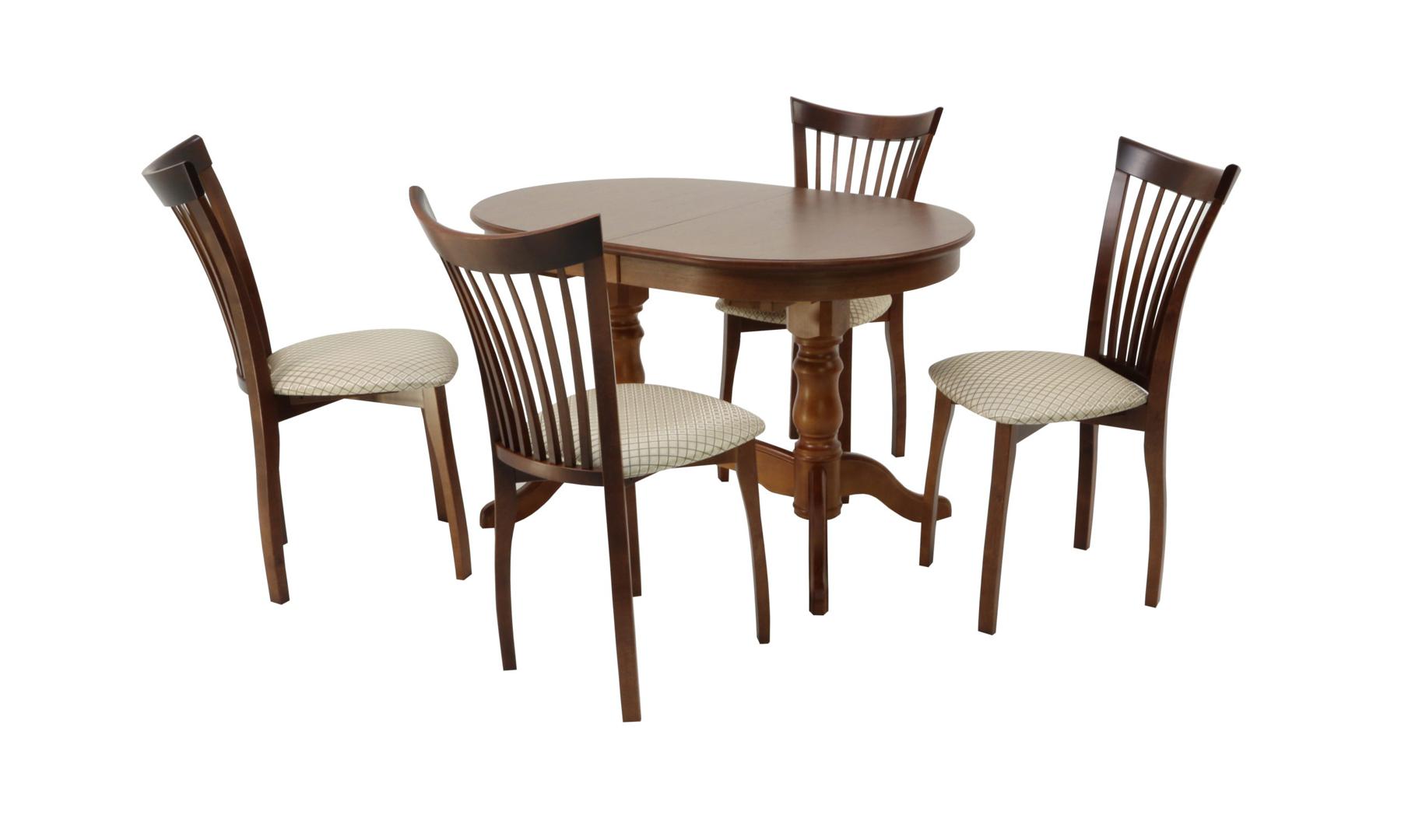 Комплект из деревянного стола Бизе на каркасе из натурального дерева и 4 стула Миранда отлично подойдет к интерьеру, выдержанному в классическом стиле. Данный комплект станет центральным элементом в гостиной, столовой зоне, на кухне, позволив создать уютное обеденное место, где смогут собираться члены дружной семьи и их гости.У модели овальная форма столешницы. Такое решение исключит риск сколов и обеспечит безопасность, в том числе, детям.Комплект выполнен в красивом цвете - орех. Сочетание изысканного дизайна и высокого качества исполнения - главная особенность комплекта.Столешница выполнена из материалов с великолепными эксплуатационными свойствами - МДФ (Материал создается на основе натуральной древесины. Практичен, надежен, имеет однородную гладкую структуру), шпон.Мебель проста в уходе - для поддержания первозданного вида достаточно использовать простую чуть влажную салфетку по мере необходимости.Состав комплекта:- стол F212021W00- стулья R001442W12