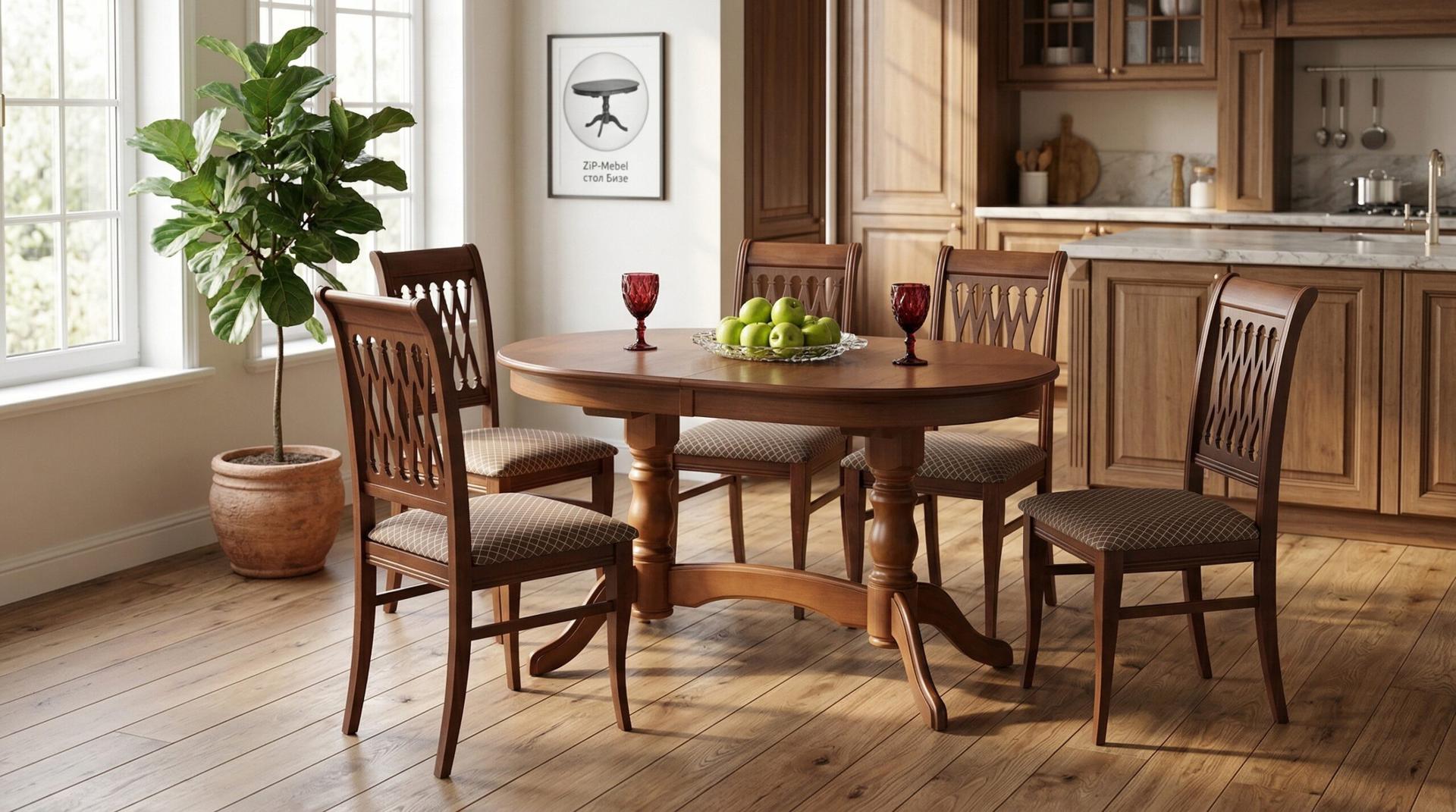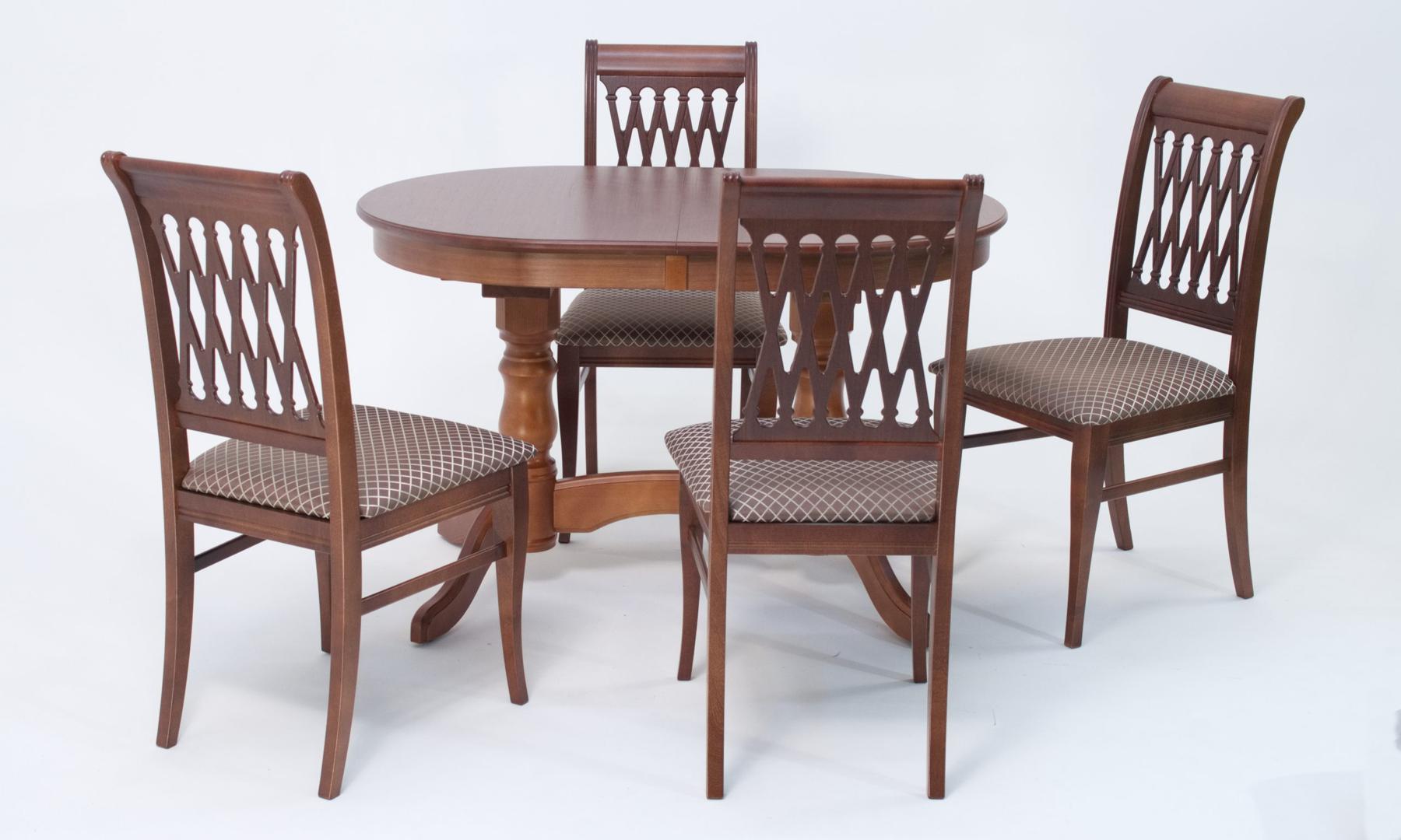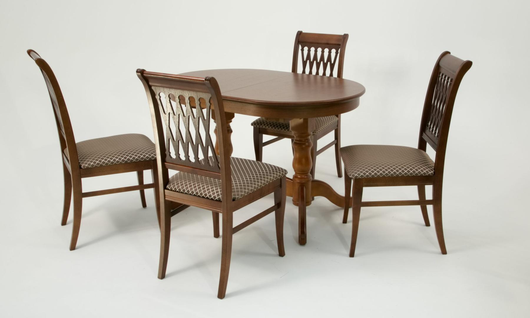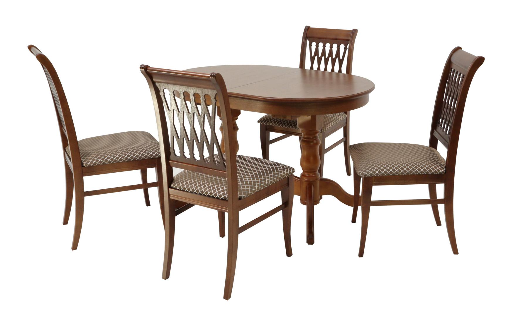 Комплект из деревянного стола Бизе на каркасе из натурального дерева и 4 стула Рич отлично подойдет к интерьеру, выдержанному в классическом стиле. Данный комплект станет центральным элементом в гостиной, столовой зоне, на кухне, позволив создать уютное обеденное место, где смогут собираться члены дружной семьи и их гости.У модели овальная форма столешницы. Такое решение исключит риск сколов и обеспечит безопасность, в том числе, детям.Комплект выполнен в красивом цвете - орех. Сочетание изысканного дизайна и высокого качества исполнения - главная особенность комплекта.Столешница выполнена из материалов с великолепными эксплуатационными свойствами - МДФ (Материал создается на основе натуральной древесины. Практичен, надежен, имеет однородную гладкую структуру), шпон.Мебель проста в уходе - для поддержания первозданного вида достаточно использовать простую чуть влажную салфетку по мере необходимости.Состав комплекта:- стол F212021W00- стулья R001404W14