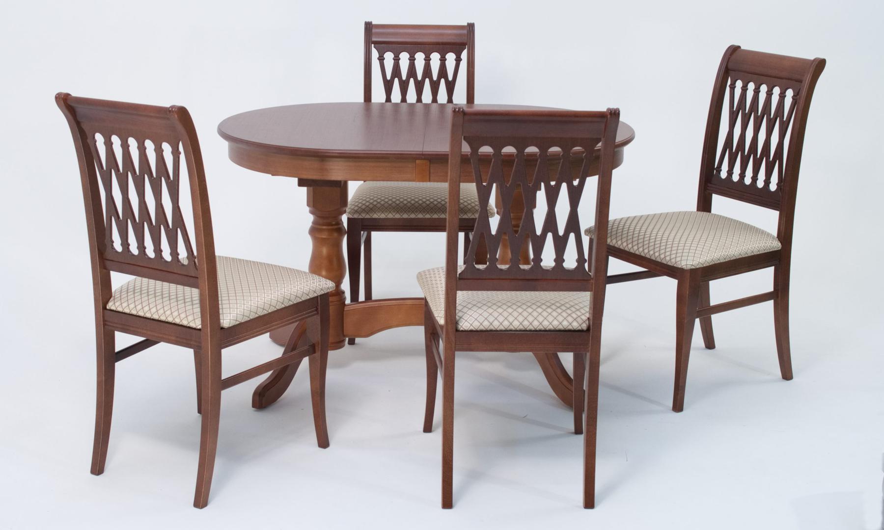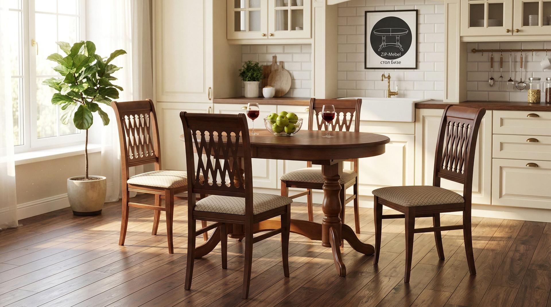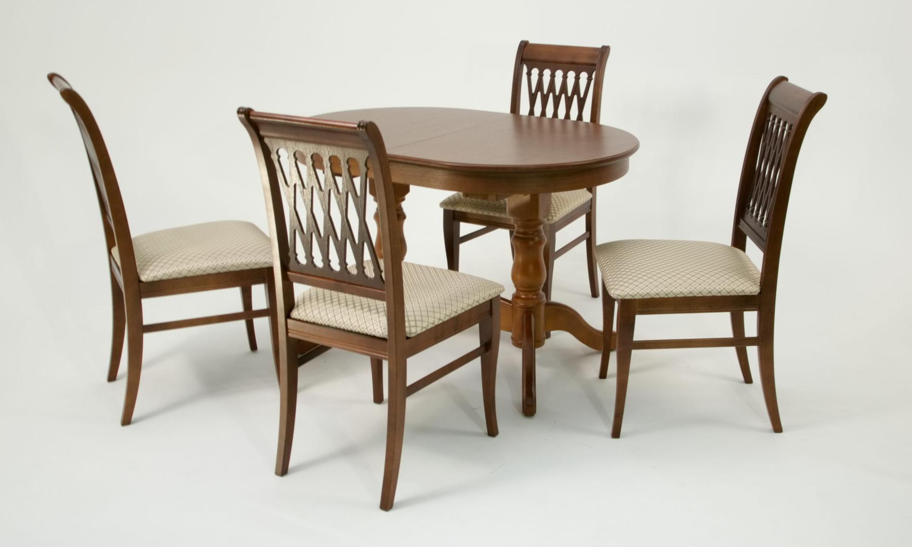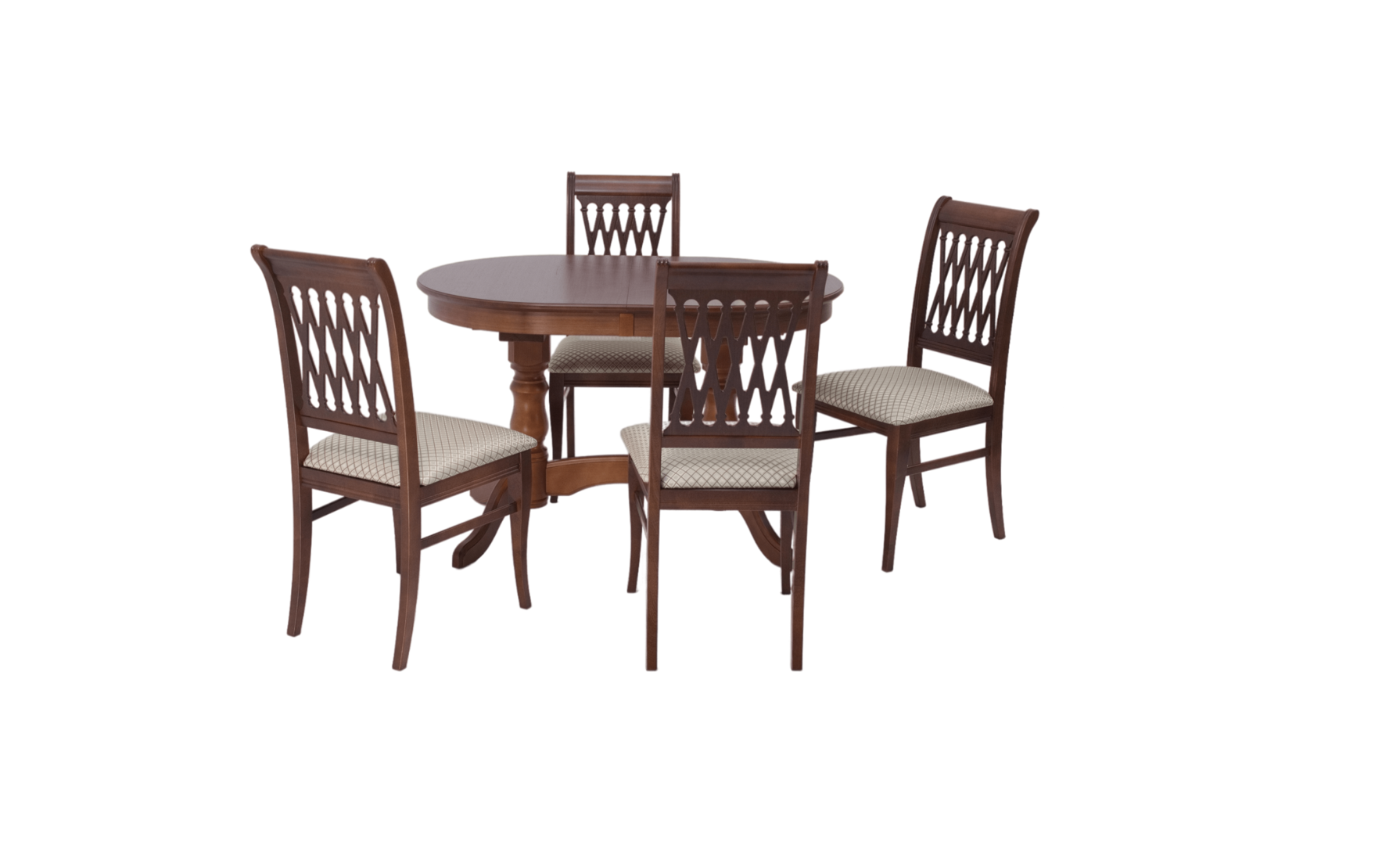 Комплект из деревянного стола Бизе на каркасе из натурального дерева и 4 стула Рич отлично подойдет к интерьеру, выдержанному в классическом стиле. Данный комплект станет центральным элементом в гостиной, столовой зоне, на кухне, позволив создать уютное обеденное место, где смогут собираться члены дружной семьи и их гости.У модели овальная форма столешницы. Такое решение исключит риск сколов и обеспечит безопасность, в том числе, детям.Комплект выполнен в красивом цвете - орех. Сочетание изысканного дизайна и высокого качества исполнения - главная особенность комплекта.Столешница выполнена из материалов с великолепными эксплуатационными свойствами - МДФ (Материал создается на основе натуральной древесины. Практичен, надежен, имеет однородную гладкую структуру), шпон.Мебель проста в уходе - для поддержания первозданного вида достаточно использовать простую чуть влажную салфетку по мере необходимости.Состав комплекта:- стол F212021W00- стулья R001402W12