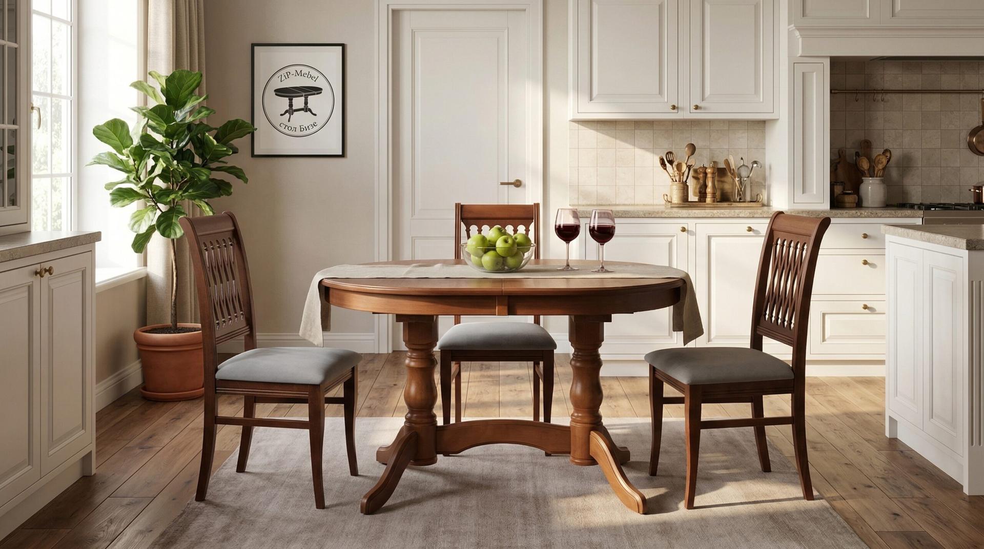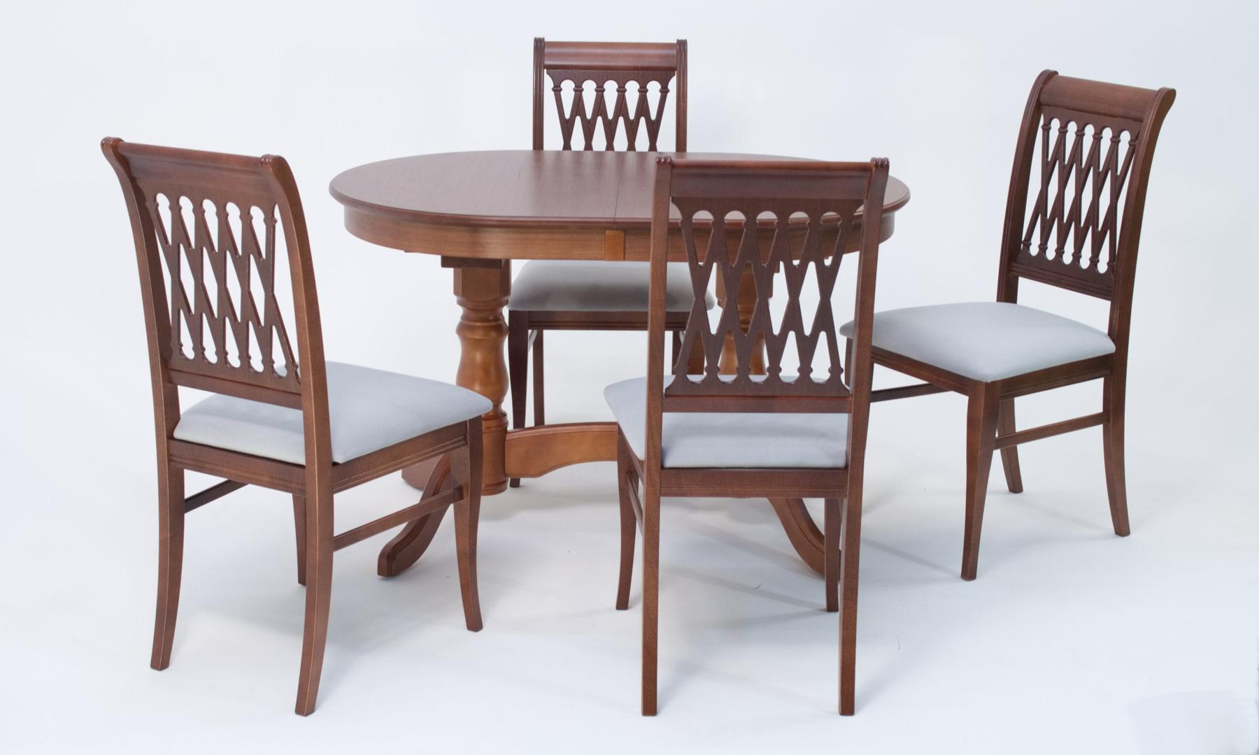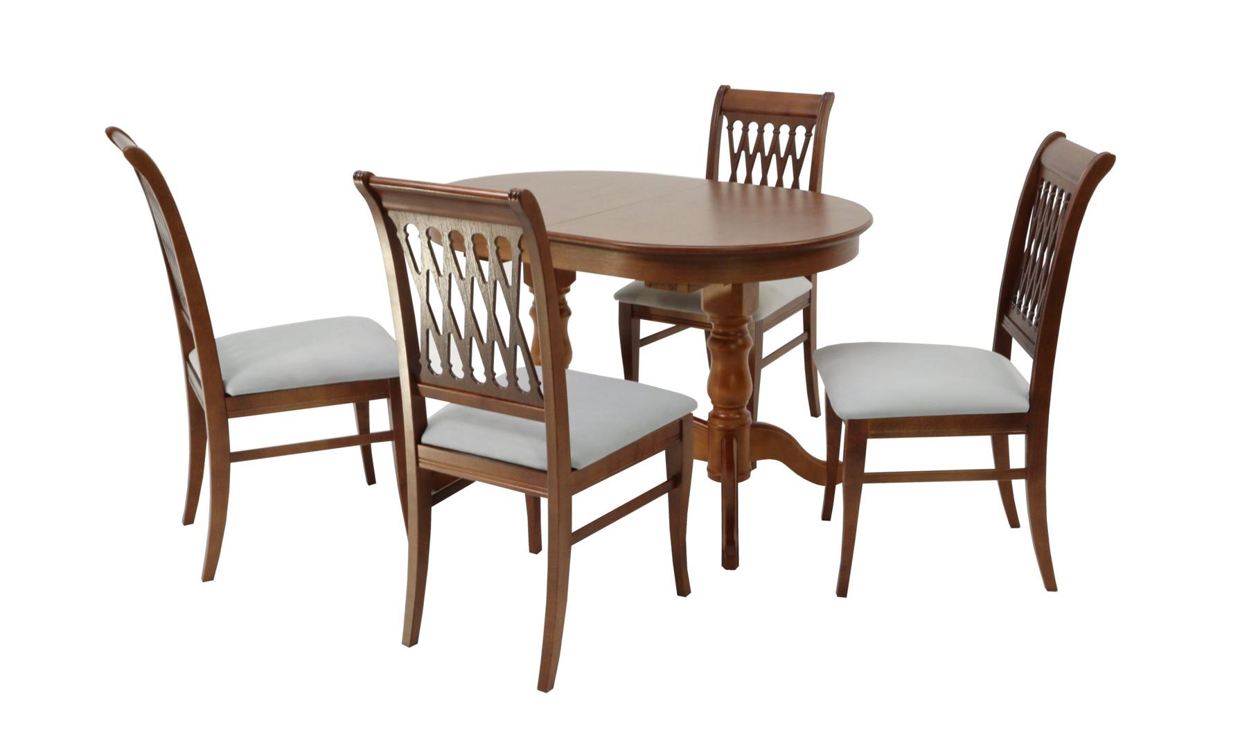 Комплект из деревянного стола Бизе на каркасе из натурального дерева и 4 стула Рич отлично подойдет к интерьеру, выдержанному в классическом стиле. Данный комплект станет центральным элементом в гостиной, столовой зоне, на кухне, позволив создать уютное обеденное место, где смогут собираться члены дружной семьи и их гости.У модели овальная форма столешницы. Такое решение исключит риск сколов и обеспечит безопасность, в том числе, детям.Комплект выполнен в красивом цвете - орех. Сочетание изысканного дизайна и высокого качества исполнения - главная особенность комплекта.Столешница выполнена из материалов с великолепными эксплуатационными свойствами - МДФ (Материал создается на основе натуральной древесины. Практичен, надежен, имеет однородную гладкую структуру), шпон.Мебель проста в уходе - для поддержания первозданного вида достаточно использовать простую чуть влажную салфетку по мере необходимости.Состав комплекта:- стол F212021W00- стулья R001400W01