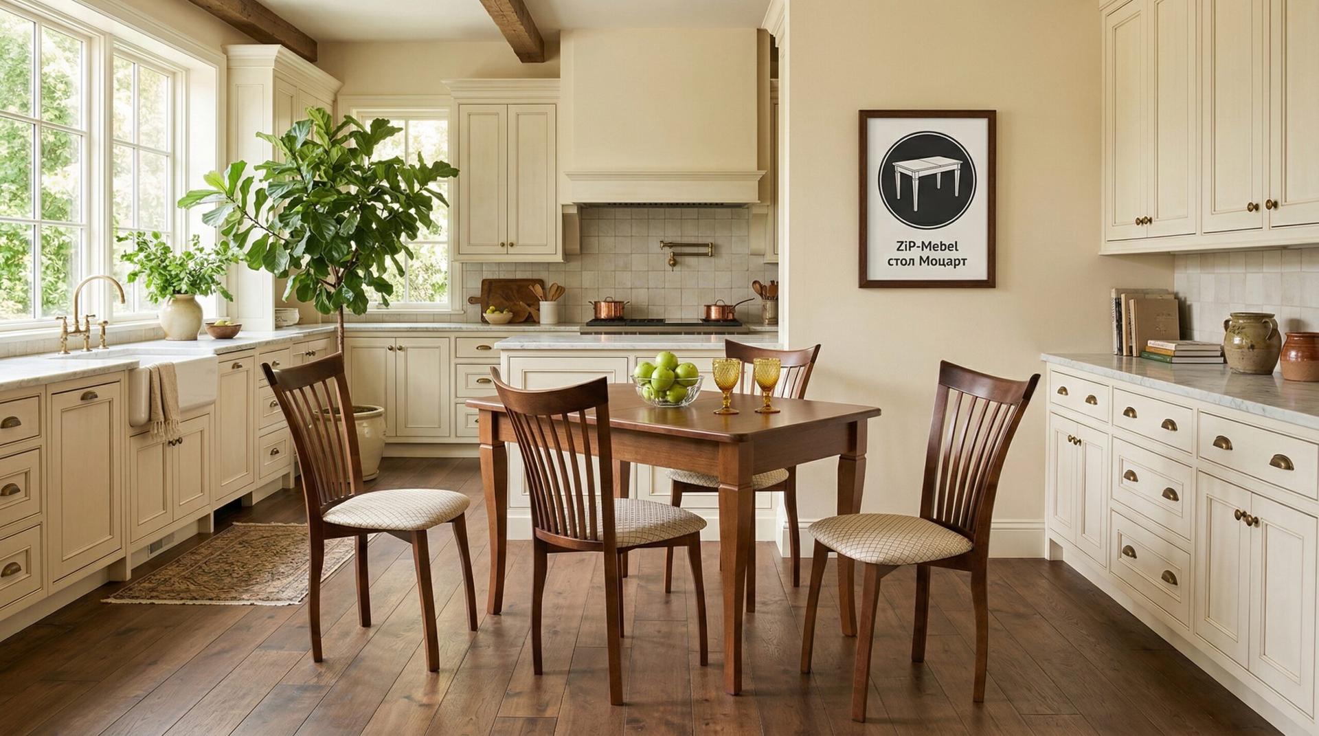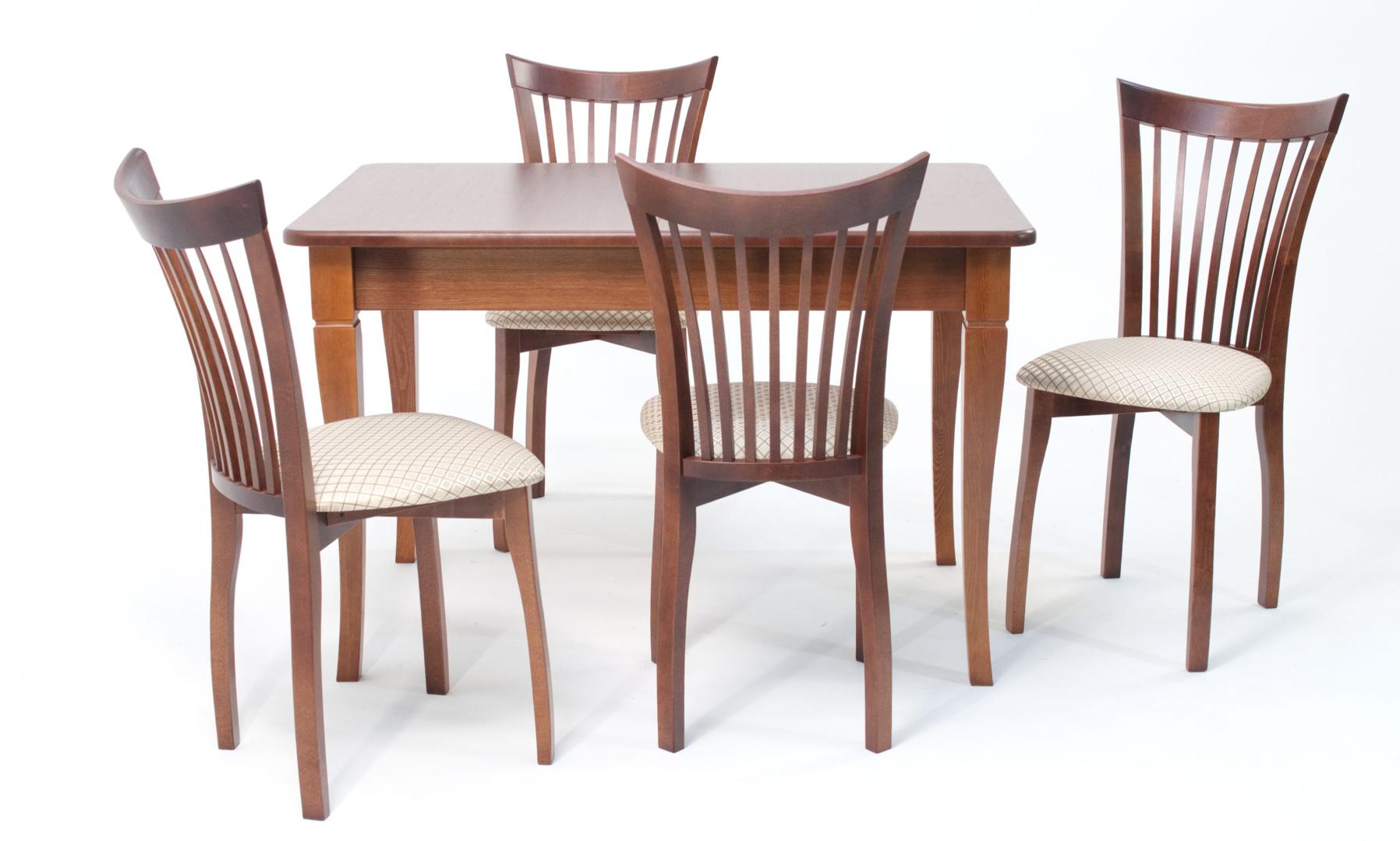 Комплект из деревянного стола Моцарт на каркасе из натурального дерева и 4 стульев Миранда отлично подойдет к интерьеру, выдержанному в классическом или софременном стиле. Данный комплект станет центральным элементом в гостиной, столовой зоне, на кухне, позволив создать уютное обеденное место, где смогут собираться члены дружной семьи и их гости.У модели скругленные углы столешницы. Такое решение исключит риск сколов и обеспечит безопасность, в том числе, детям.Комплект выполнен в красивом цвете - орех. Сочетание изысканного дизайна и высокого качества исполнения - главная особенность комплекта.Столешница выполнена из материалов с великолепными эксплуатационными свойствами - МДФ (Материал создается на основе натуральной древесины. Практичен, надежен, имеет однородную гладкую структуру), шпон.Мебель проста в уходе - для поддержания первозданного вида достаточно использовать простую чуть влажную салфетку по мере необходимости.