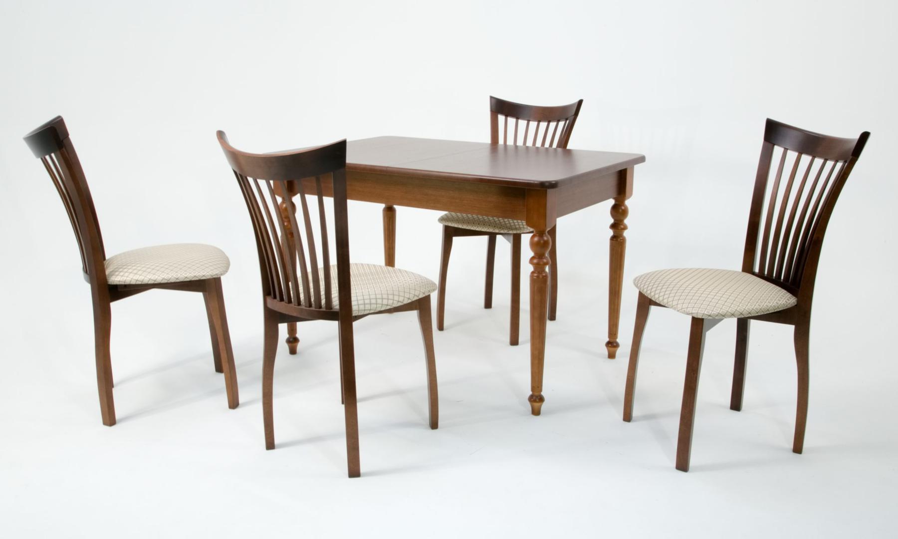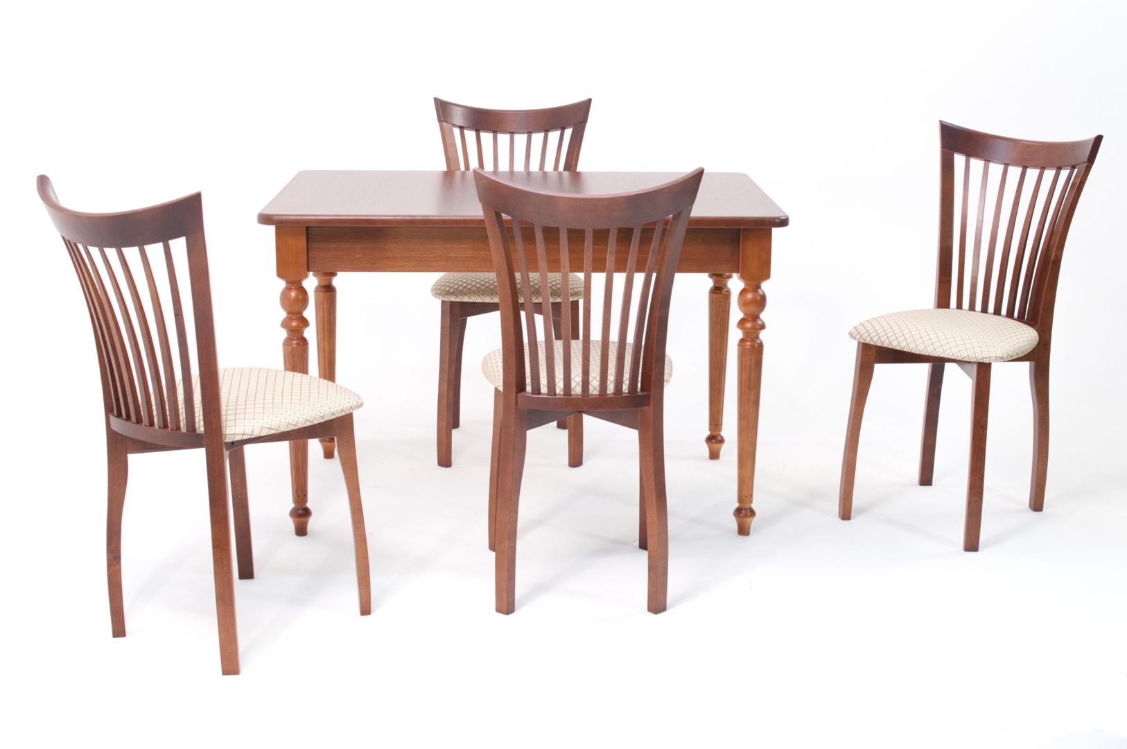 Комплект из деревянного стола Вивальди на каркасе из натурального дерева и 4 стульев Миранда отлично подойдет к интерьеру, выдержанному в классическом или софременном стиле. Данный комплект станет центральным элементом в гостиной, столовой зоне, на кухне, позволив создать уютное обеденное место, где смогут собираться члены дружной семьи и их гости.У модели скругленные углы столешницы. Такое решение исключит риск сколов и обеспечит безопасность, в том числе, детям.Комплект выполнен в красивом цвете - орех. Сочетание изысканного дизайна и высокого качества исполнения - главная особенность комплекта.Столешница выполнена из материалов с великолепными эксплуатационными свойствами - МДФ (Материал создается на основе натуральной древесины. Практичен, надежен, имеет однородную гладкую структуру), шпон.Мебель проста в уходе - для поддержания первозданного вида достаточно использовать простую чуть влажную салфетку по мере необходимости.