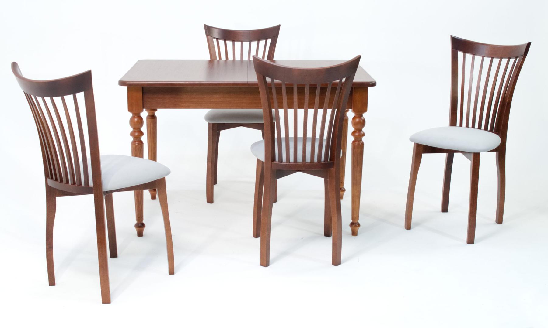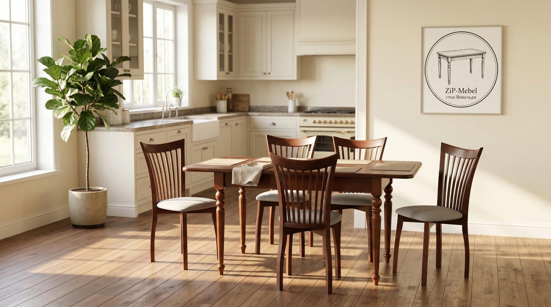 Комплект из деревянного стола Вивальди на каркасе из натурального дерева и 4 стульев Миранда отлично подойдет к интерьеру, выдержанному в классическом или софременном стиле. Данный комплект станет центральным элементом в гостиной, столовой зоне, на кухне, позволив создать уютное обеденное место, где смогут собираться члены дружной семьи и их гости.У модели скругленные углы столешницы. Такое решение исключит риск сколов и обеспечит безопасность, в том числе, детям.Комплект выполнен в красивом цвете - орех. Сочетание изысканного дизайна и высокого качества исполнения - главная особенность комплекта.Столешница выполнена из материалов с великолепными эксплуатационными свойствами - МДФ (Материал создается на основе натуральной древесины. Практичен, надежен, имеет однородную гладкую структуру), шпон.Мебель проста в уходе - для поддержания первозданного вида достаточно использовать простую чуть влажную салфетку по мере необходимости.