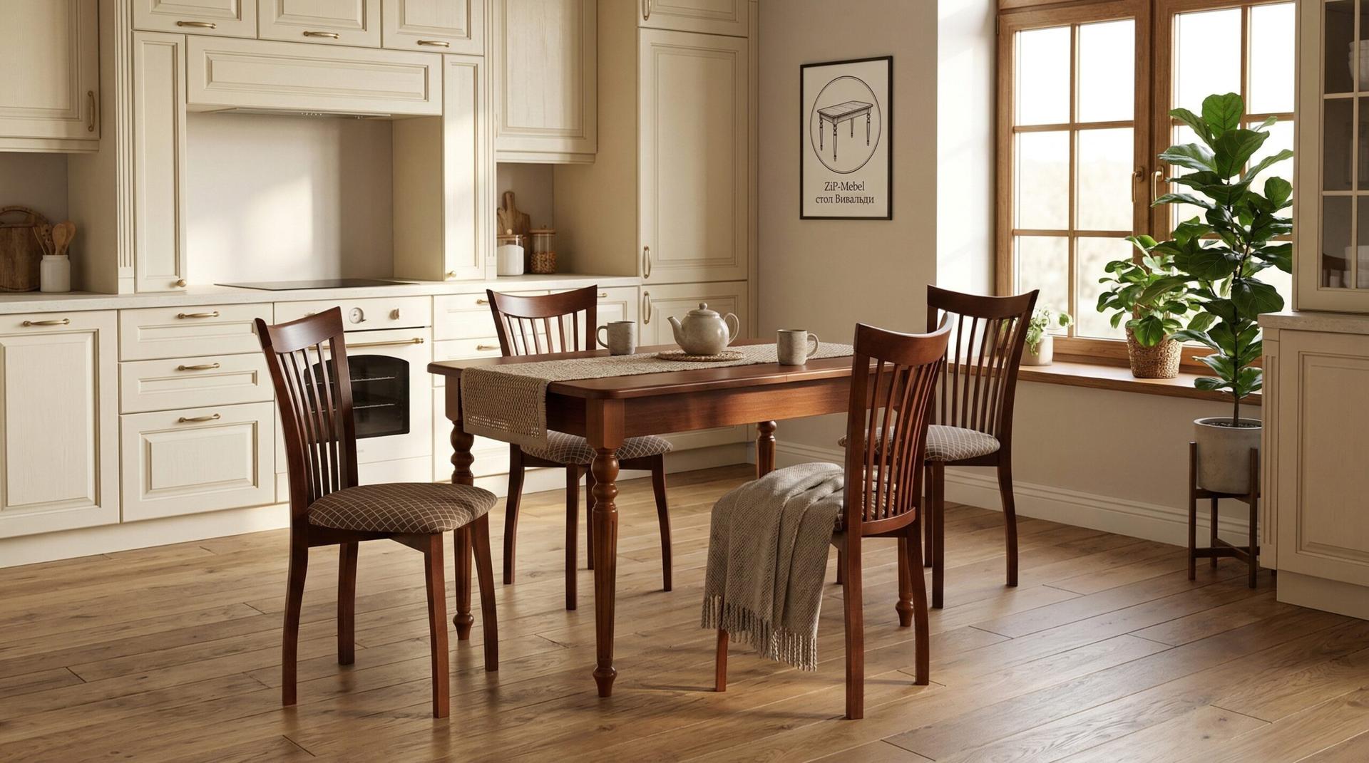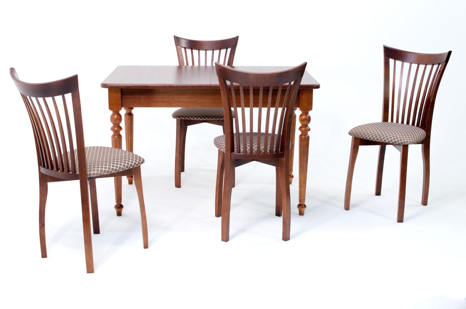Комплект из деревянного стола Вивальди на каркасе из натурального дерева и 4 стульев Миранда отлично подойдет к интерьеру, выдержанному в классическом или софременном стиле. Данный комплект станет центральным элементом в гостиной, столовой зоне, на кухне, позволив создать уютное обеденное место, где смогут собираться члены дружной семьи и их гости.У модели скругленные углы столешницы. Такое решение исключит риск сколов и обеспечит безопасность, в том числе, детям.Комплект выполнен в красивом цвете - орех. Сочетание изысканного дизайна и высокого качества исполнения - главная особенность комплекта.Столешница выполнена из материалов с великолепными эксплуатационными свойствами - МДФ (Материал создается на основе натуральной древесины. Практичен, надежен, имеет однородную гладкую структуру), шпон.Мебель проста в уходе - для поддержания первозданного вида достаточно использовать простую чуть влажную салфетку по мере необходимости.