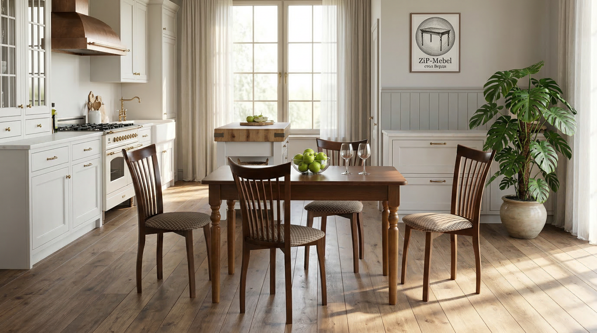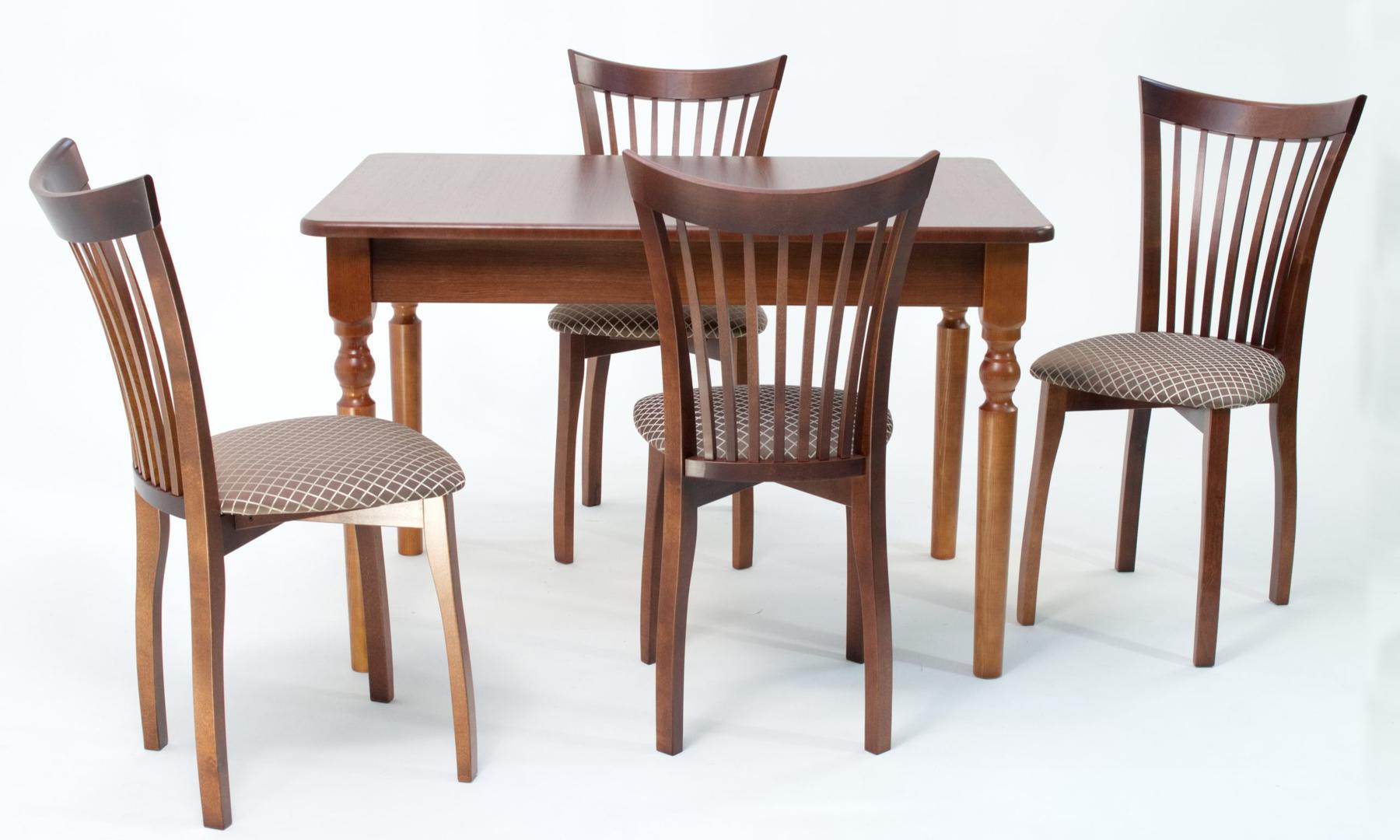Комплект из деревянного стола Верди на каркасе из натурального дерева и 4 стульев Миранда отлично подойдет к интерьеру, выдержанному в классическом или софременном стиле. Данный комплект станет центральным элементом в гостиной, столовой зоне, на кухне, позволив создать уютное обеденное место, где смогут собираться члены дружной семьи и их гости.У модели скругленные углы столешницы. Такое решение исключит риск сколов и обеспечит безопасность, в том числе, детям.Комплект выполнен в красивом цвете - орех. Сочетание изысканного дизайна и высокого качества исполнения - главная особенность комплекта.Столешница выполнена из материалов с великолепными эксплуатационными свойствами - МДФ (Материал создается на основе натуральной древесины. Практичен, надежен, имеет однородную гладкую структуру), шпон.Мебель проста в уходе - для поддержания первозданного вида достаточно использовать простую чуть влажную салфетку по мере необходимости.