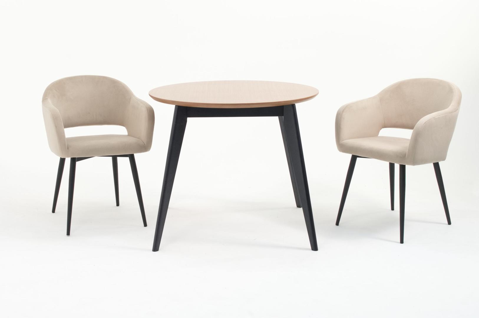 Обеденная группа ZiP-mebel Стол Сканди К 90 черное дерево/натур с креслами Пичч велюр бежевый арт. F004125BUNX2Z212902B02