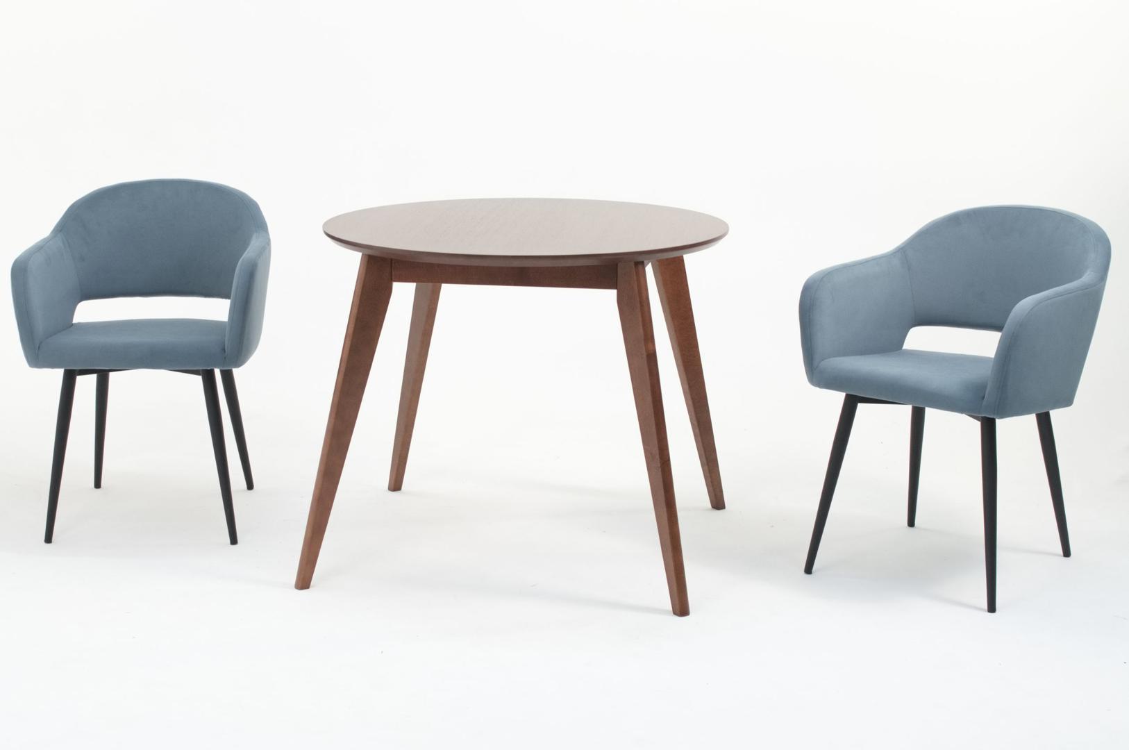 Обеденная группа ZiP-mebel Стол Сканди К 100 орех с креслами Пичч велюр синий арт. F004105W00X2Z212902B03