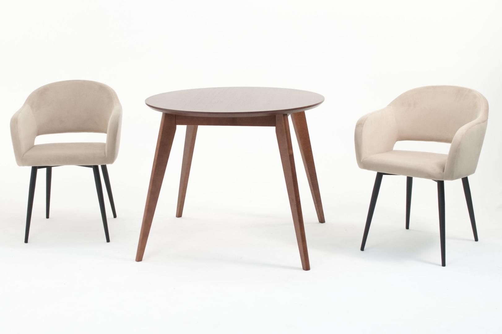 Обеденная группа ZiP-mebel Стол Сканди К 100 орех с креслами Пичч велюр бежевый арт. F004105W00X2Z212902B02