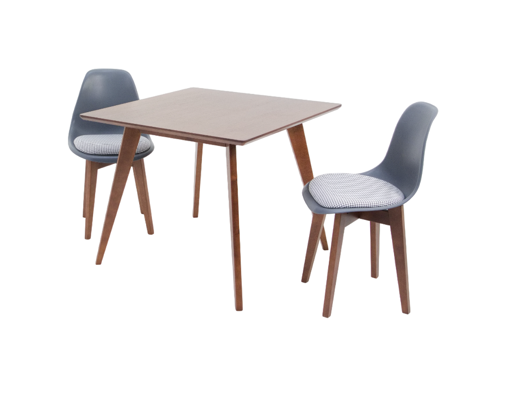 Комплект из деревянного стола Сканди на каркасе из натурального дерева и 2 стула Франк отлично подойдет к интерьеру, выдержанному в скандинавском стиле. Данный комплект станет центральным элементом в гостиной, столовой зоне, на кухне, позволив создать уютное обеденное место, где смогут собираться члены дружной семьи и их гости.У модели квадратная форма столешницы, со скруглением углов. Такое решение исключит риск сколов и обеспечит безопасность, в том числе, детям.Комплект выполнен в красивом цвете - орех. Сочетание изысканного дизайна и высокого качества исполнения - главная особенность комплекта.Столешница выполнена из материалов с великолепными эксплуатационными свойствами - МДФ (Материал создается на основе натуральной древесины. Практичен, надежен, имеет однородную гладкую структуру), шпон.Мебель проста в уходе - для поддержания первозданного вида достаточно использовать простую чуть влажную салфетку по мере необходимости.Состав комплекта:- стол F404121W00- стулья R101771W1G