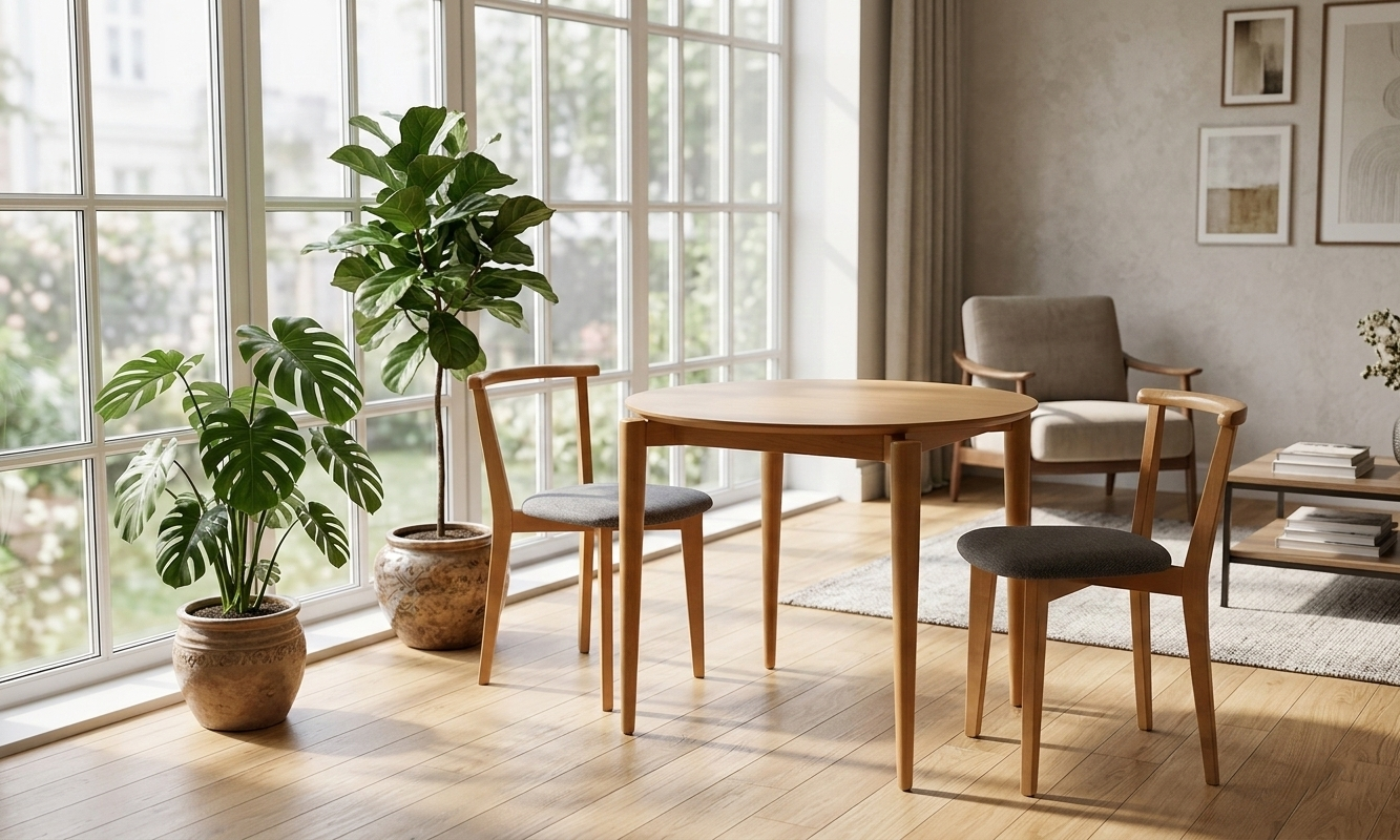 Представьте себе воплощение элегантности и функциональности — круглый обеденный стол, который станет сердцем вашего интерьера!Этот стол — настоящий шедевр минимализма. Его лаконичная форма и изысканное сочетание материалов покорят даже самых взыскательных ценителей дизайна. Белоснежная столешница с плавными линиями создаёт ощущение лёгкости и простора, а изящные деревянные ножки тёплого оттенка добавляют благородства и уюта. Безупречный дизайн. Круглая форма не только эстетична, но и практична: она способствует непринуждённому общению за столом, создаёт атмосферу гармонии. Идеальное сочетание материалов. Сочетание столешницы и деревянных ножек — это баланс между современностью и классикой. Такой стол органично впишется как в минималистичный, так и в более традиционный интерьер. Компактность без потери функциональности. Благодаря продуманным пропорциям стол не занимает много места, но при этом достаточно вместителен для семейных обедов или дружеских посиделок. Универсальность. Этот стол станет изюминкой не только кухни или столовой, но и гостиной, зоны отдыха или даже домашнего кабинета. Представьте: чашка кофе утром, семейный ужин вечером или рабочая встреча в комфортной обстановке — всё возможно с этим столом! Качество, которое говорит само за себя. Прочная конструкция и качественные материалы гарантируют долговечность и надёжность.