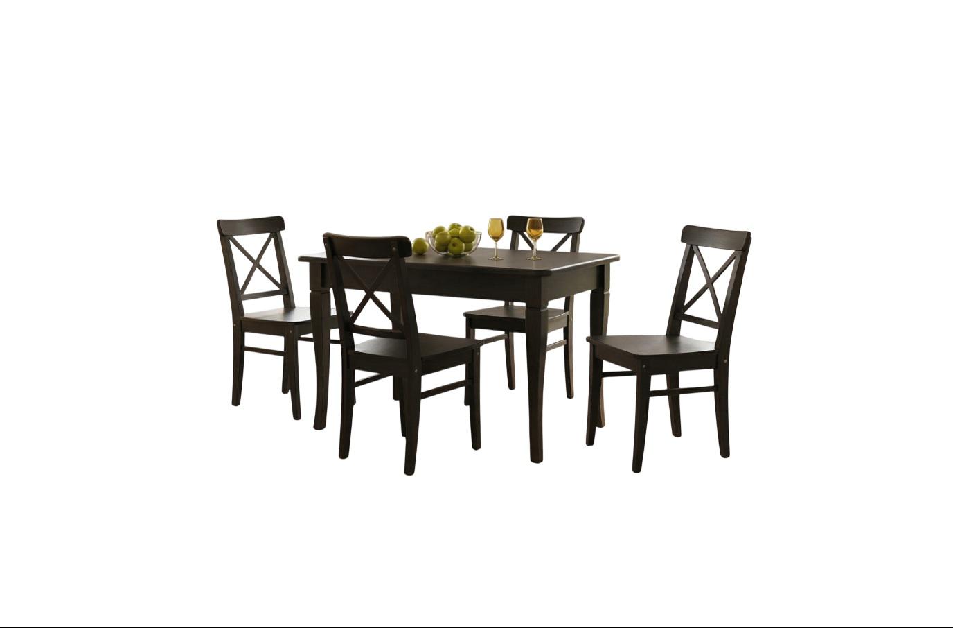 Комплект из деревянного стола Моцарт на каркасе из натурального дерева и 4 стульев Ингольф отлично подойдет к интерьеру, выдержанному в классическом или современном стиле. Данный комплект станет центральным элементом в гостиной, столовой зоне, на кухне, позволив создать уютное обеденное место, где смогут собираться члены дружной семьи и их гости.У модели скругленные углы столешницы. Такое решение исключит риск сколов и обеспечит безопасность, в том числе, детям.Комплект выполнен в красивом цвете -чёрное дерево. Сочетание изысканного дизайна и высокого качества исполнения - главная особенность комплекта.Столешница выполнена из материалов с великолепными эксплуатационными свойствами - МДФ (Материал создается на основе натуральной древесины. Практичен, надежен, имеет однородную гладкую структуру), шпон.Мебель проста в уходе - для поддержания первозданного вида достаточно использовать простую чуть влажную салфетку по мере необходимости.