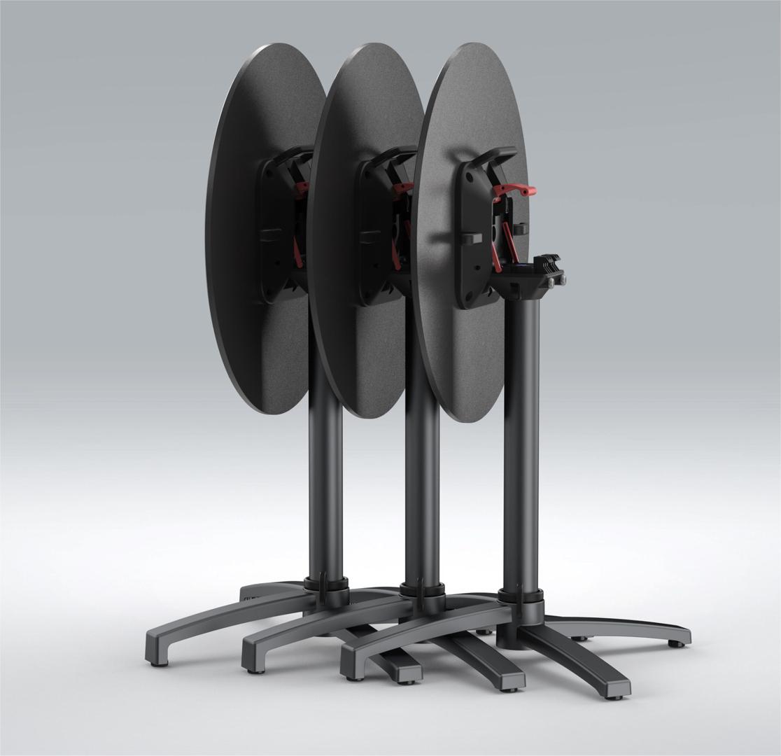 Подстолье 8046 - технологичное поворотное подстолье.Максимально удобно, если столы нужно хранить вне сезона или убирать на ночь - они стопируются и занимают мимнимум места.сделано из алюминия - не боится влаги, можно использовать и внутри кафе, и снаружи на улицемасса всего 3,5 кг. - без труда переносится даже девушками-официанткамикомпактно складывается вместе со столешницамиимеет регулировочные ножкиа еще есть кольцо, через которое можно крепить тросом все подстолья на ночь, чтобы не уносить в подсобку