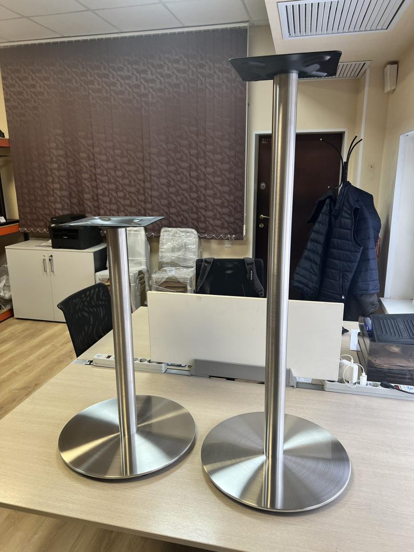 Барное подстолье из нержавеющей стали. Тяжелое основание изготовлено из толстого стального диска и покрыто листом нержавеющей стали. Вся поверхность имеет полуматовую сатинированную структуру, что придает подстолью более современный и недешевый внешний вид, в отличие от представленных на рынке хромированных. Также имеются другие подстолья из нержавеющей стали ПОДСТОЛЬЯ ИЗ НЕРЖАВЕЙКИ.