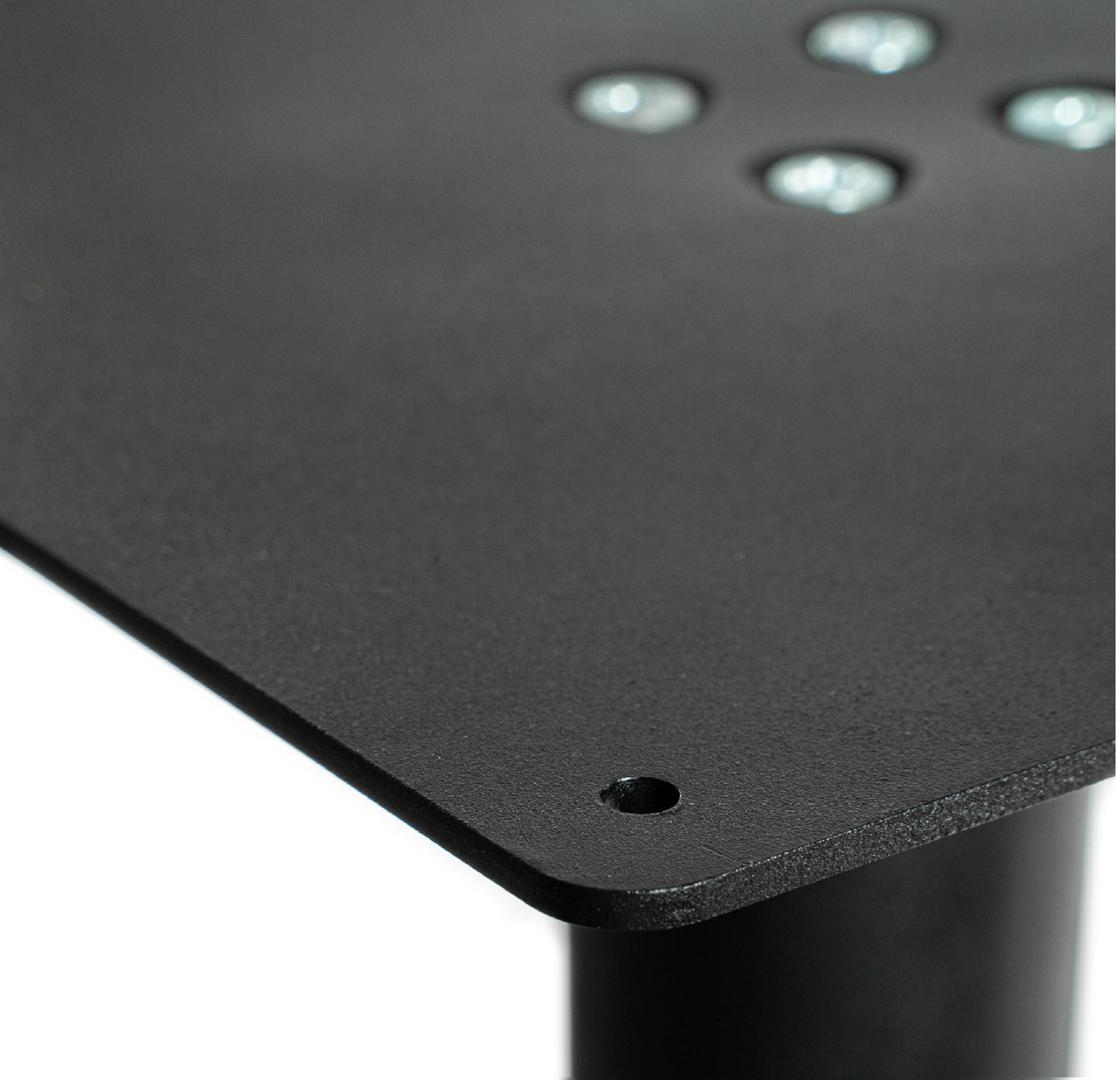 Мощное прямоугольное подстолье 5005 (двойное) собственного производства из серии УСИЛЕННЫХ подстолий quot;лайнquot;.ПРЕИМУЩЕСТВА:Порошковая покраска в два слоя - максимально надежная. Поверхность - ровная, без бугров и шагрени - матовый муар черного цветаУсиленный крепеж основания и крышки крепления столешницы - на 4-х мощных винтах.Верхние площадки из толстого металла имеют увеличенный размер 290х290 мм. и 8 отверстий для крепления. Обычно столы передвигают, держась за столешницу, а увеличинное количество крепежа сделано специально, чтобы они не отрывались при перемещение столов официантами.Традиционно комплектуется регулировочными ножками - защищают пол от царапин, позволяют выровнять стол на неровных полах У этого стола их не 4, как обычно, а 6 шт.Это просто хорошее и добротное подстолье по невысокой цене.