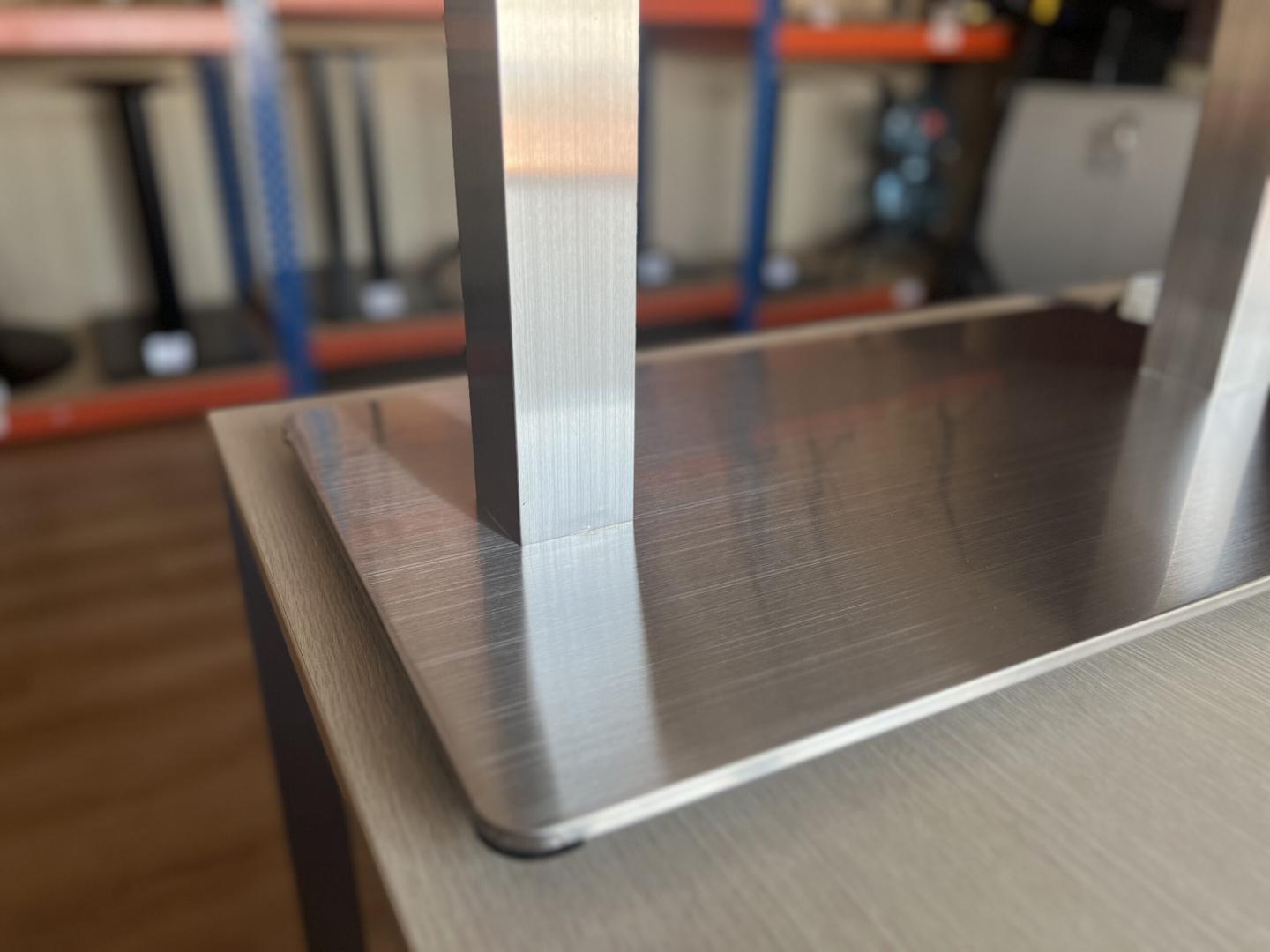 Двойное подстолье 4116 из нержавеющей стали с прямоугольным основанием и квадратными стойками (не круглые!). Матовая, сатинированная поверхность подстолья имеет не зеркальный, а холодный, металлический блеск. В отличие от хромированного на такой поверхности не так заметны пятна и разводы.Обращайте внимание на массу - более 20 кг, поэтому устойчивое. На рынке встречаются более легкие аналоги, а здесь важен каждый килограмм.У этого подстолья есть четыре одинарных компаньона в разных размерах и с квадратным, и круглым основаниеми: подстолье 4110 и с круглым основанием: подстолье 4105