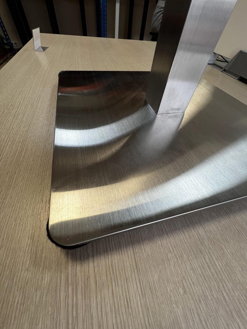 Подстолье 4110 из нержавеющей стали с квадратным основанием. В отличие от хромированных подстолий на нержавейке не заметны разводы и пятна. Преимущество станет явным зимой, когда тающий снег от обуви гостей вашего ресторана будет оставаться на основании подстолья. Поверхность металла часто называют quot;сатинированнойquot;, она имеет не зеркальный, а именно матовый металлический блеск, что выглядит намного благороднее.Есть более мощный вариант этого подстолья с увеличенным основанием: подстолье 4111