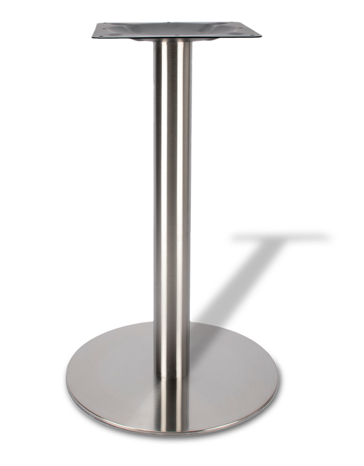 Круглое подстолье 4105 из нержавеющей стали. Эти подстолья часто можно встретить на фудкортах торговых центров. Нержавеющая сталь имеет эффект сатинирования, т.е. является не глянцевой на 100%, как зеркало, а слегка матовой. Зимой это дает преимущество - грязная обувь не оставляет столь заметные следы, как на хромированных подстольях.Посмотрите подстолье-компаньон для двойных столов: https://zip-mebel.ru/product/podstole-4116/