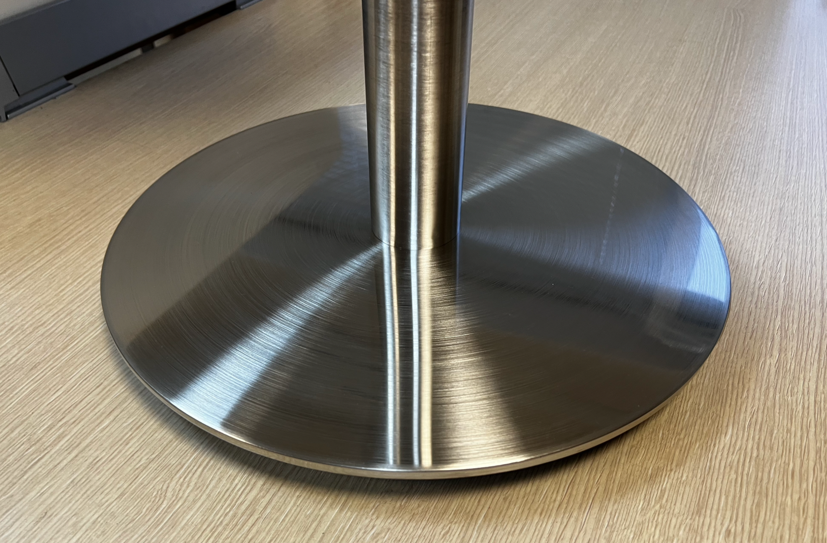 В нашем ассортимент 3 круглых подстолья из нержавеющей стали, эта модель 4106 - средняя из них, самая распространенная, имеет размер основания д450 мм.Комплектуется регулировчными ножками в основании, как и все эти модели, имеет утяжелитель из МЕТАЛЛА, а не из пластика, поэтому вся тяжесть подстолья сосредоточена в самом низу, что делает его максимально устойчивым.Модель имеет не гальваничесоке покрытие quot;хромquot;, а имеет поверхность из полноценной нержавеющей стали с холодным матовым блеском. Выглядит, конечно, очень стильно, не сравнить с дешевым хромом. Разумеется, бонусом получите долговечность.