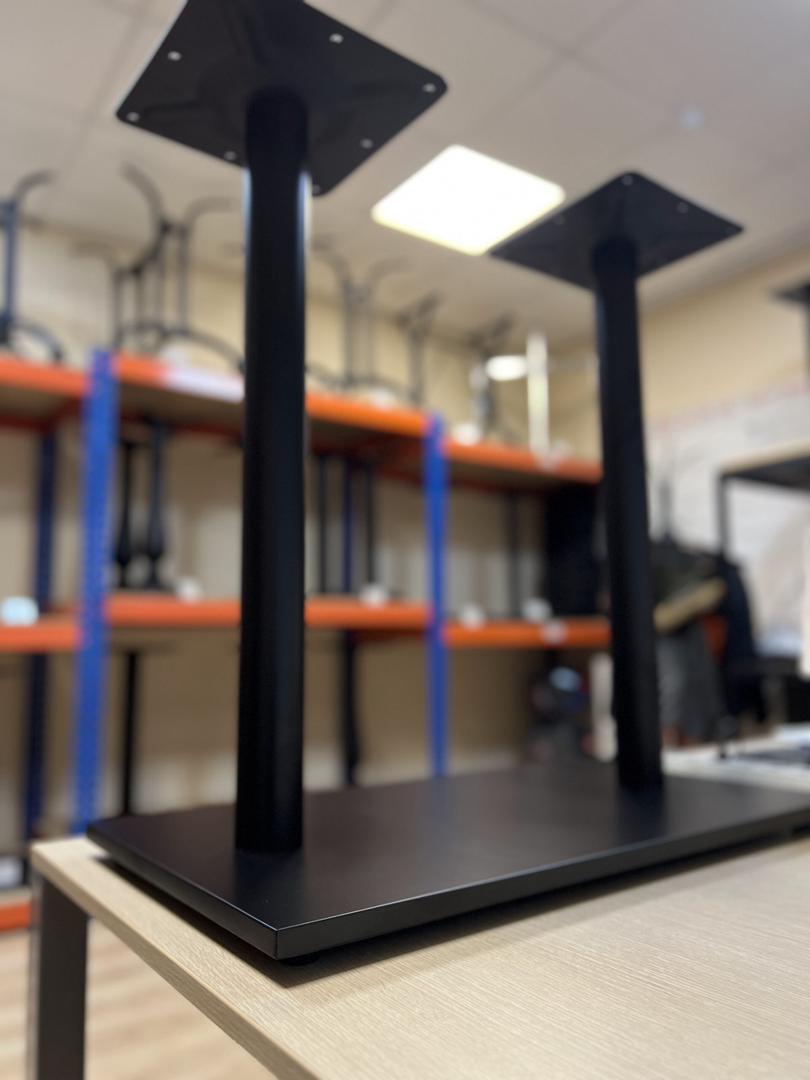 Недорогое двойное подстолье артикул 4315 - простенькая модель эконом-класса, преимущество одно - его невысокая цена.Верхняя чашка крепления к столешнице сделана из толстого листа стали, дополнительно усилена ребрами жесткости. Порошковая окраска черного матового цвета премиального качества. Поверхность основания и стойка сделаны из стали, внутренняя часть основания сделана из композитного материала, который дает усnойчивость, но является хрупким и непрочным материалом, который выдерживает только легкие нагрузки и небольшой размер столешницы.Мы рекомендуем перед покупкой подстолий для заведения общепита сначала приобрести пилотный образец для тестового стола или, как минимум, приехать к нам в выставочный зал, чтобы сделать осознанный выбор перед покупкой, сравнив разные материалы и типы конструкций, а также получить консультацию наших менеджеров.Обратите внимание на похожее по дизайну подстолье, имеющее более высокую прочность конструкции - модель 4015. Это подстолье с усиленным основанием большего размера, выдерживает любые разумные нагрузки, имеет большую массу, лучшую устойчиваость. Мы продаем разные типы и модели подстолий, но всегда хотим, чтобы вы делали свой выбор осознанно!* В нашем ассортименте есть подстолья усиленной конструкции, предназначенные для тяжелых режимов эксплуатаии столов. Если вы предъявляете повышенные требования к надежности, рекомендуем рассмотреть именно усиленные модели. ОБращайтесь за консультацией, обяхательно объясним и поможем с выбором.