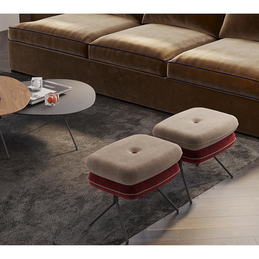 Пуф Bergenson Bjorn Пуф pea, велюр, бежевый/бордовый арт. BB0000150