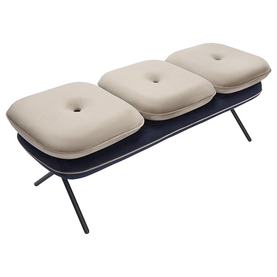 Пуф Bergenson Bjorn Банкетка pea, велюр, бежевая/темно-синяя арт. BB0000158