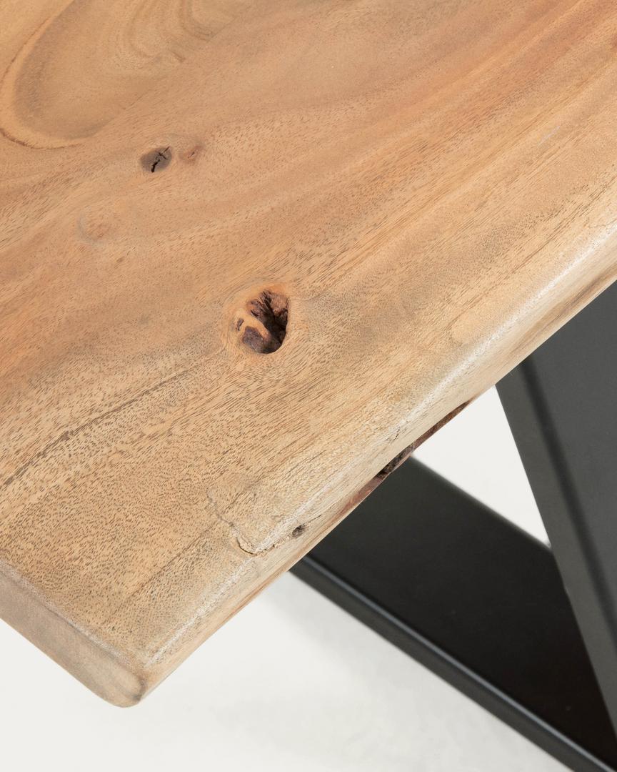 Скамейка Sono 180 от фабрики La Forma (ex Julia Grup) – деревенский дизайн в современном исполнении. Скамейка Sono 180 выполнена в минималистичном стиле из натурального дерева и прочного железа. Она простая и функциональная, как раз то, что нужно для незамысловатых уличных интерьеров. В этом и заложен ее главный смысл. Прекрасное решение для дачи, шатра, веранды. Скамейка имеет сборную конструкцию, состоящую из деревянной плиты и двух металлических опор. Плита толщиной 4 см выполнена из натуральной акации, которая покрыта прозрачным лаком для защиты от негативного воздействия влаги, загрязнений, ультрафиолета. Уникальные тона зерен и вершин делают каждое изделие единственным в своем роде. Ножки рамочной формы, в виде трапеций. Они окрашены в черный матовой краской, которая защищает металл от коррозии. Внизу на ножках есть резиновые накладки, которые защищают покрытие металла от повреждений. Вместимость – 3 человека. Общая максимальная нагрузка – 300 кг. Размеры: ширина – 190 см, высота – 46 см, глубина – 45 см. Вес изделия – 33,7 кг. Сборка самостоятельная. Инструкция и крепеж включены в комплектацию.