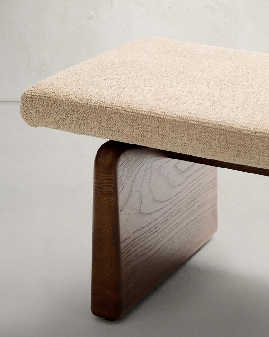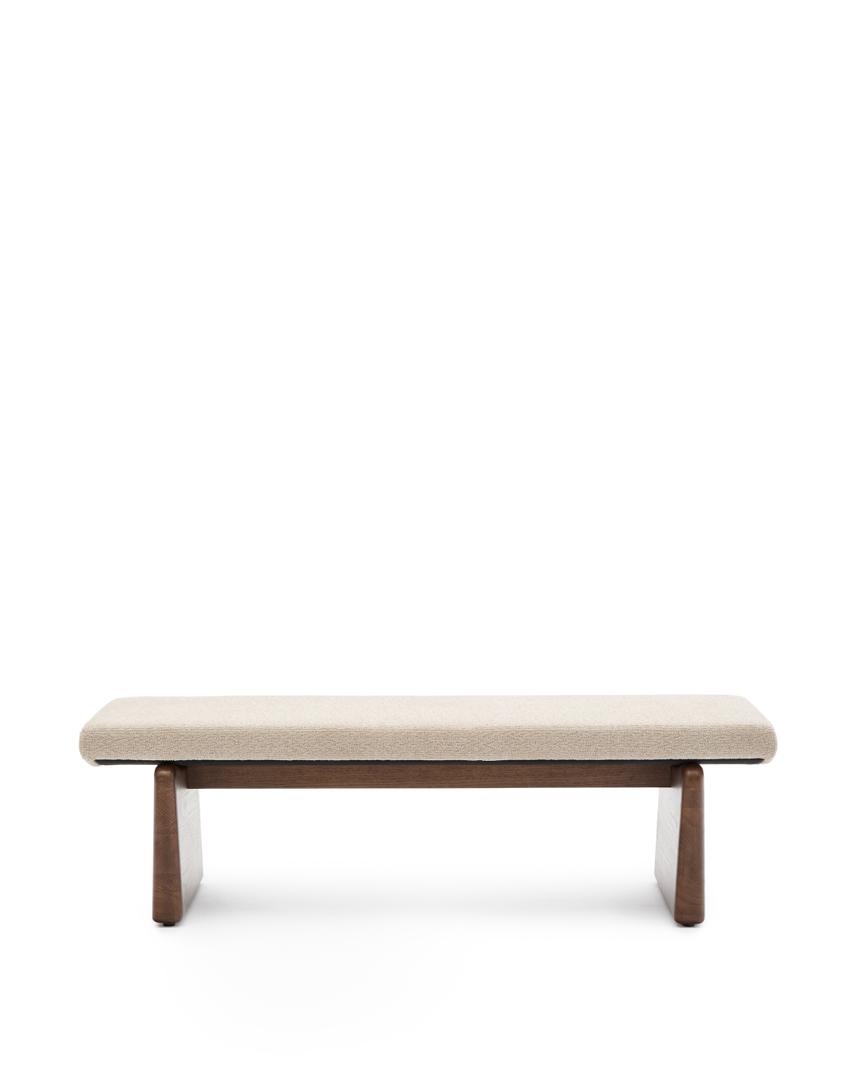 Скамья La Forma (ех Julia Grup) Topaz Скамья из бежевого шенилла и массива ясеня с отделкой под орех 150 см арт. 207951