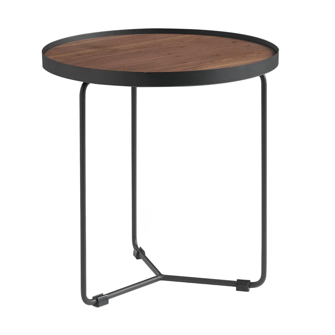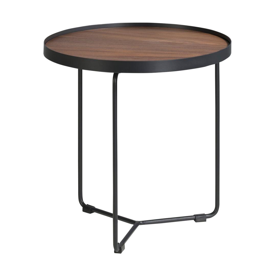 Журнальный столик C047 очарует всех поклонников незамысловатых предметов интерьера, относящихся к минимализму. Здесь тонкие сварные ножки едва заметны в сравнении с большой столешницей, которая подчеркнуто выделена обручем. Изделие не будет загромождать пространство, но при этом в полной мере справится со своим функционалом. Столик имеет круглую форму. Столешница диаметром 47 см выполнена из МДФ и шпона орехового дерева (в базовом фабричном варианте). Этот цвет широко применим в европейских интерьерах, легко гармонирует со многими цветовыми решениями. Столешница окантована металлическим обручем, к которому приварены опоры. Вся конструкция покрыта черной порошковой краской, которая защищает металл от негативного воздействия влаги, механических повреждений. В свою очередь, ограничительный обруч также защищает края столешницы от сколов и порезов. Три опоры внизу соединяются друг с другом в тройную ось, обеспечивая равномерное распределение нагрузки и прочность для всей конструкции. Масса столика составляет 8 кг, высота – 45 см. В коллекции журнальных столиков от фабрики Angel Cerda представлена аналогичная модель С046, но с другими габаритами.