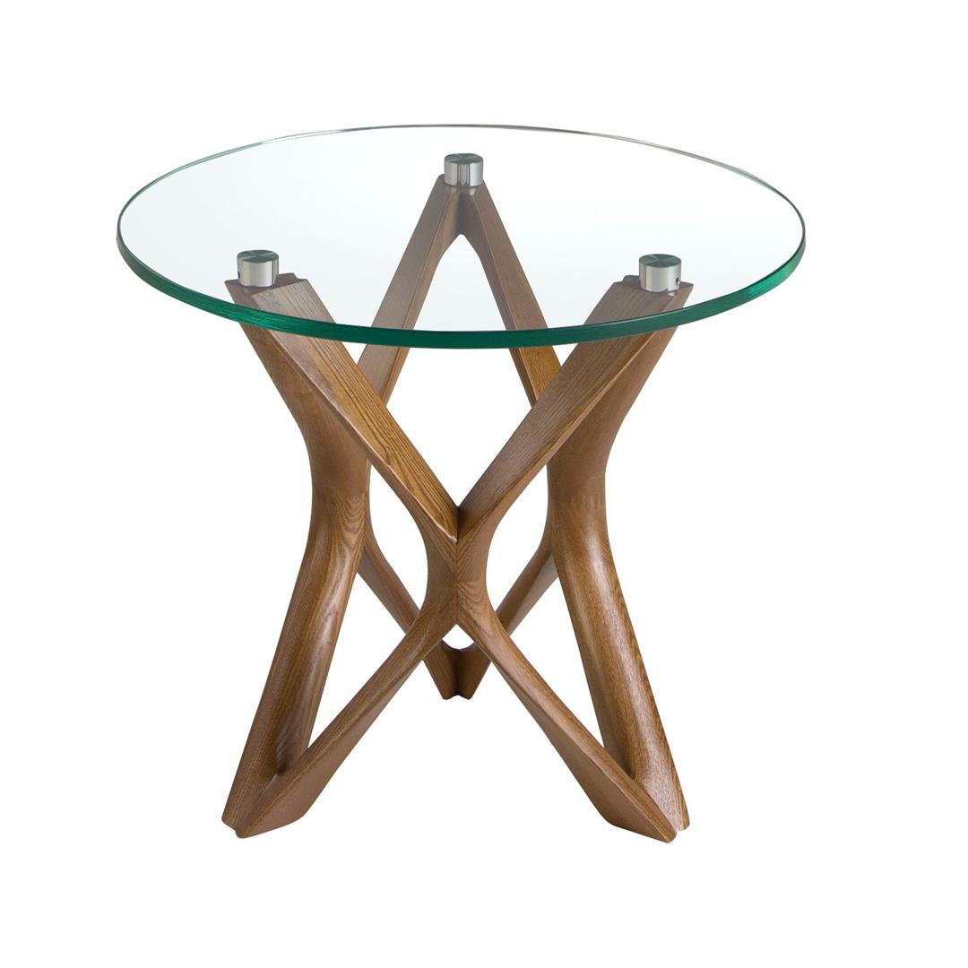 Столик Angel Cerda Круглый приставной столик 2127/LT17192 из закаленного стекла и ореха арт. 190259